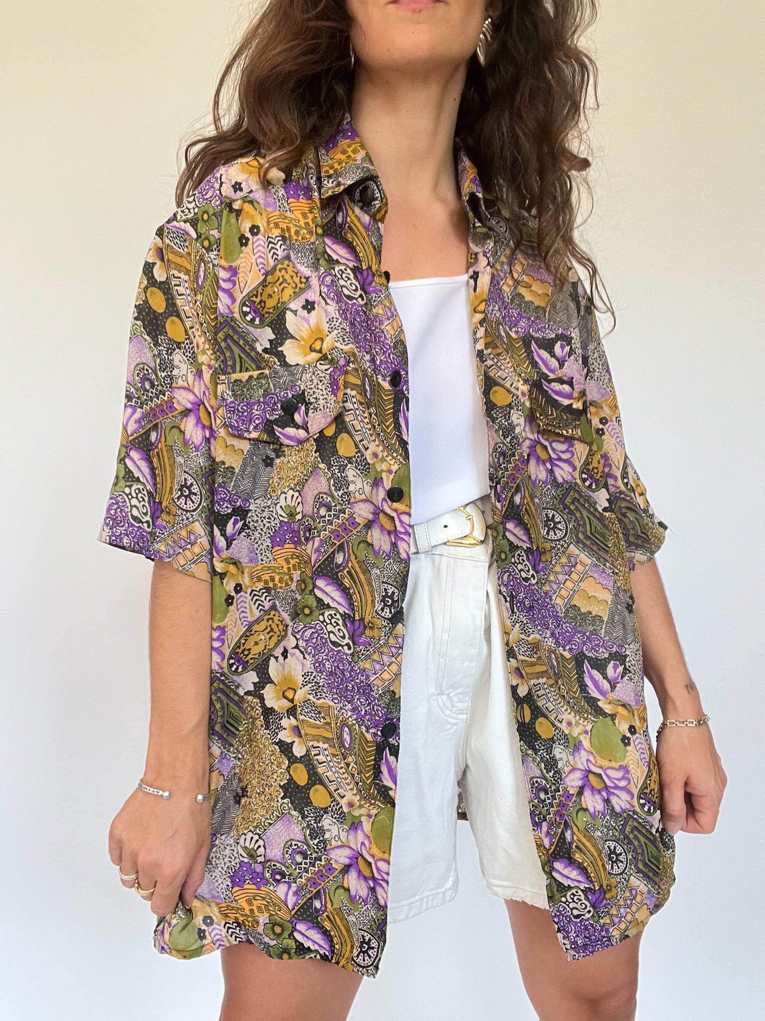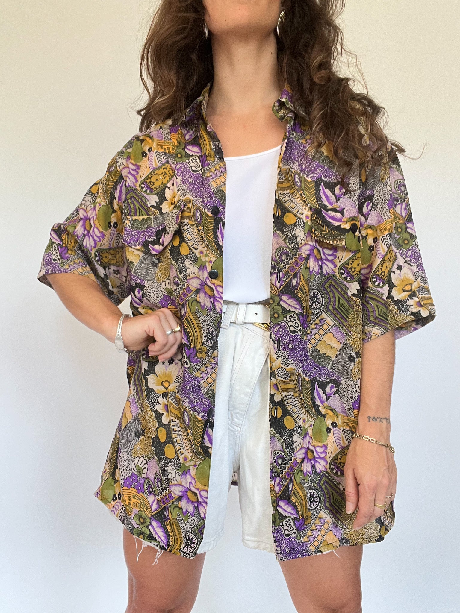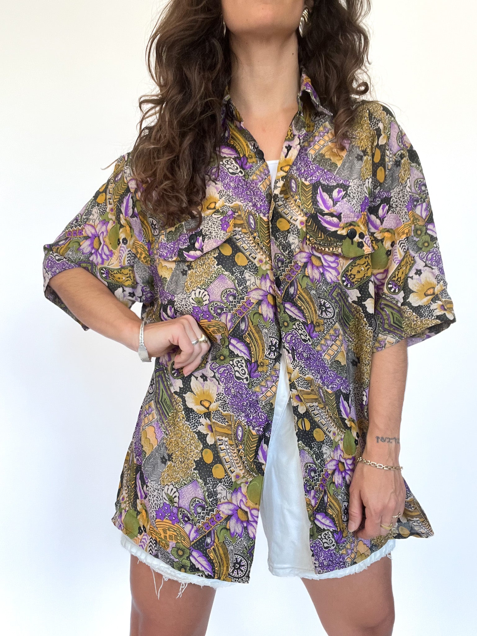 Vintage 90’s Purple & Gold Floral Print Shirt