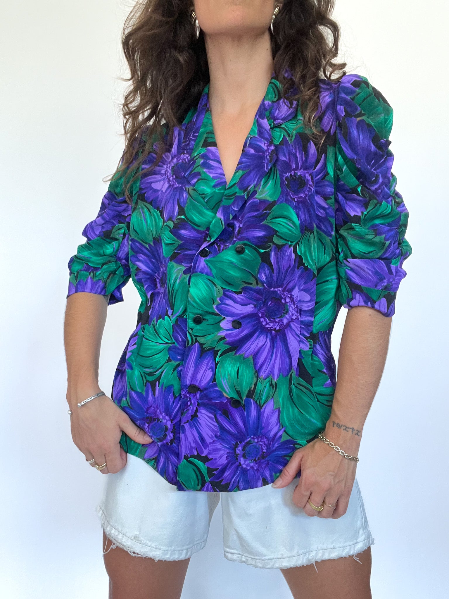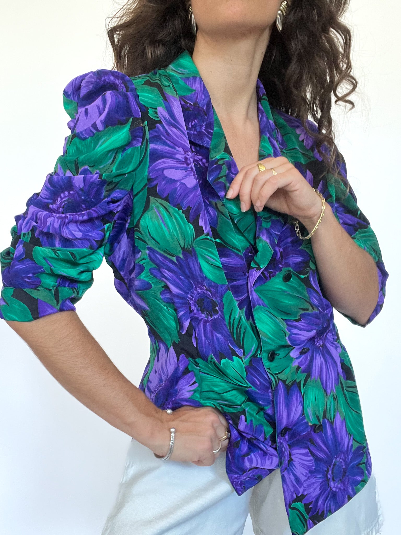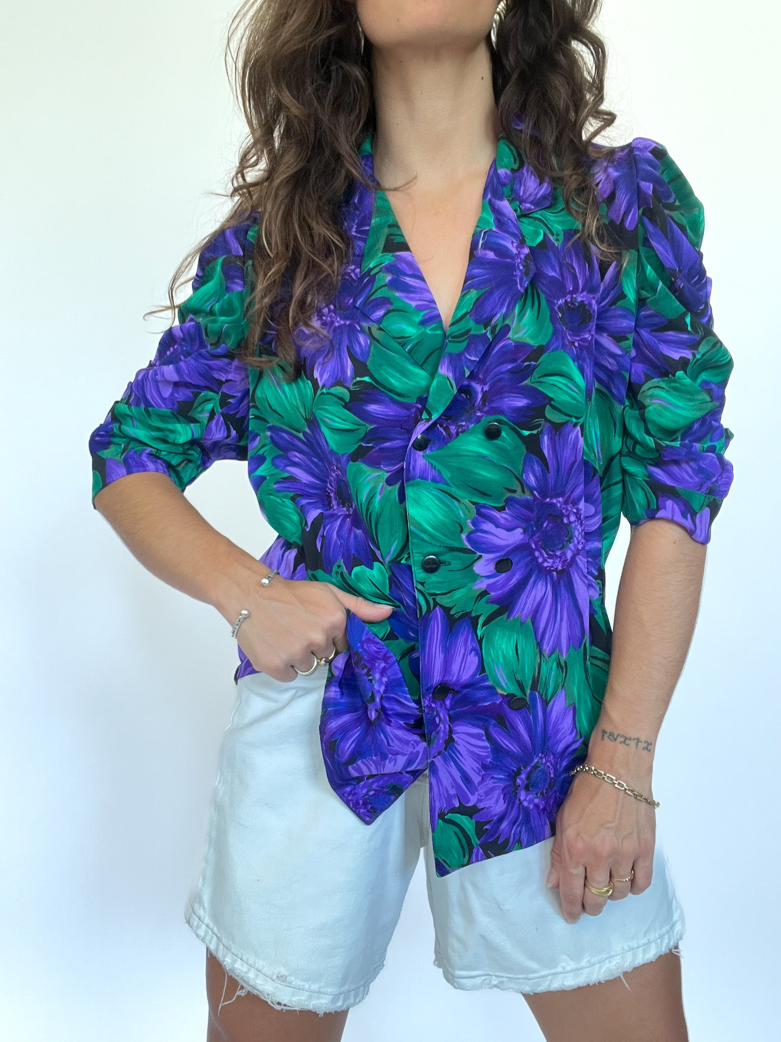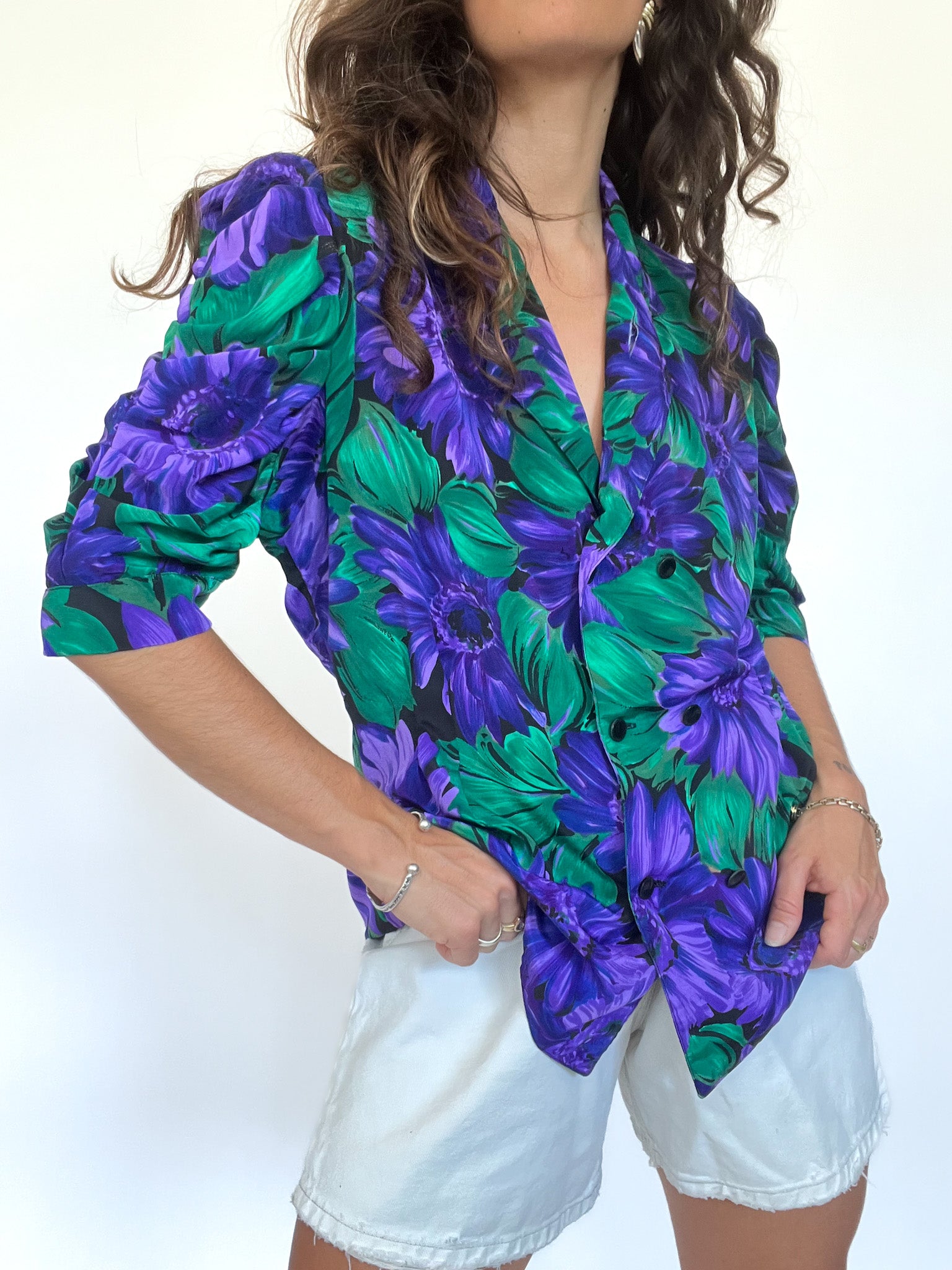 Vintage 90’s Purple & Gold Floral Print Shirt