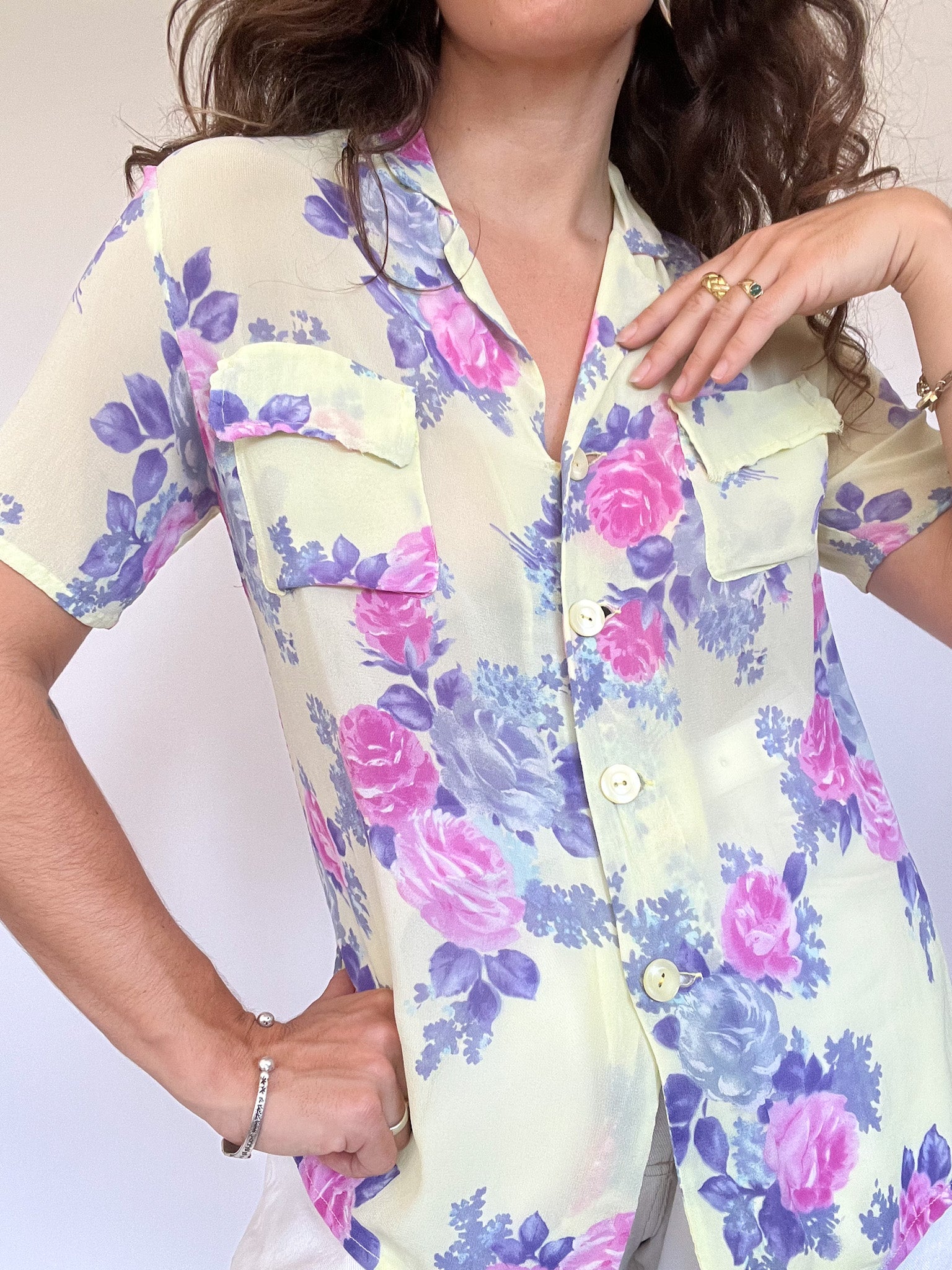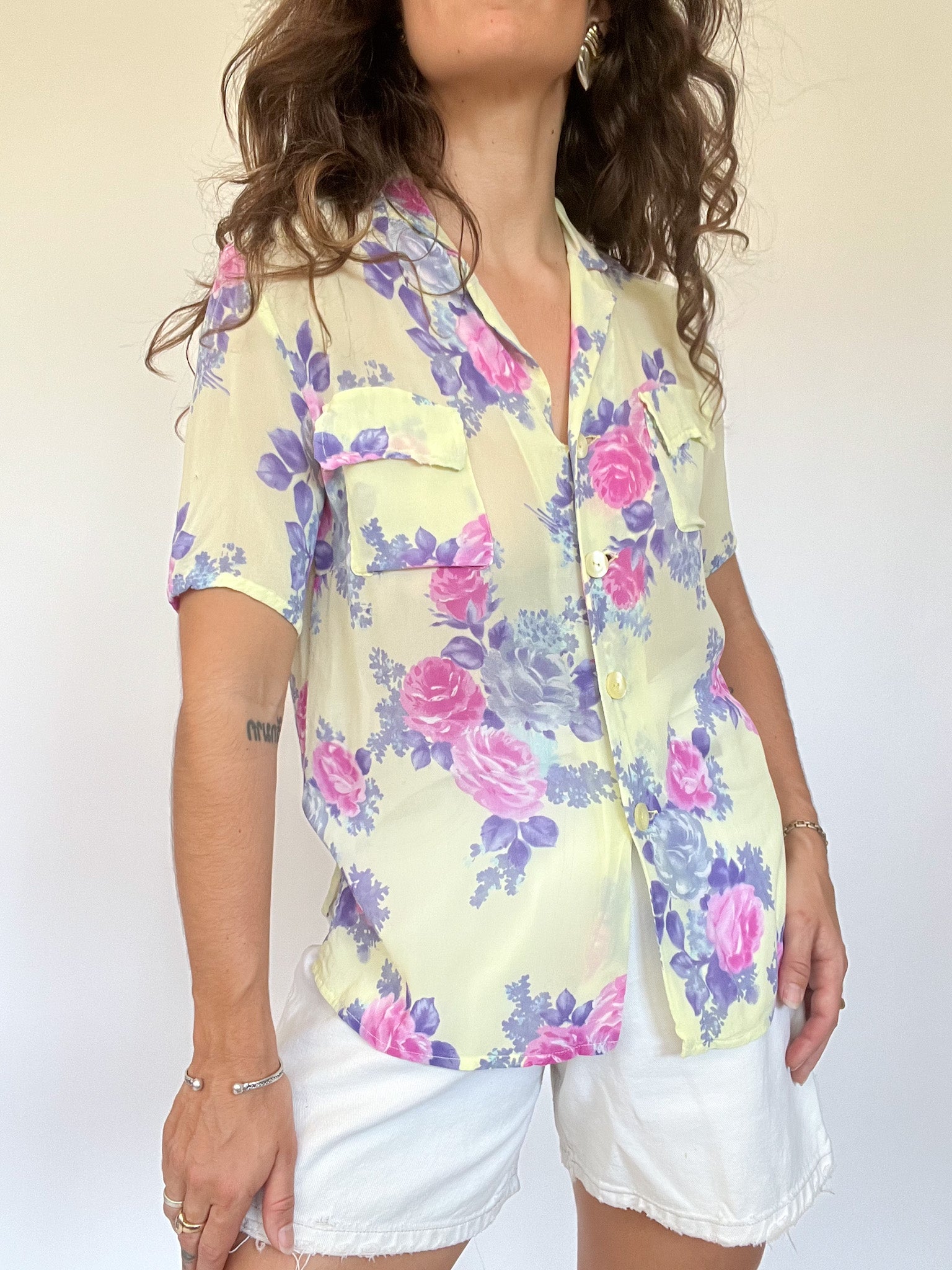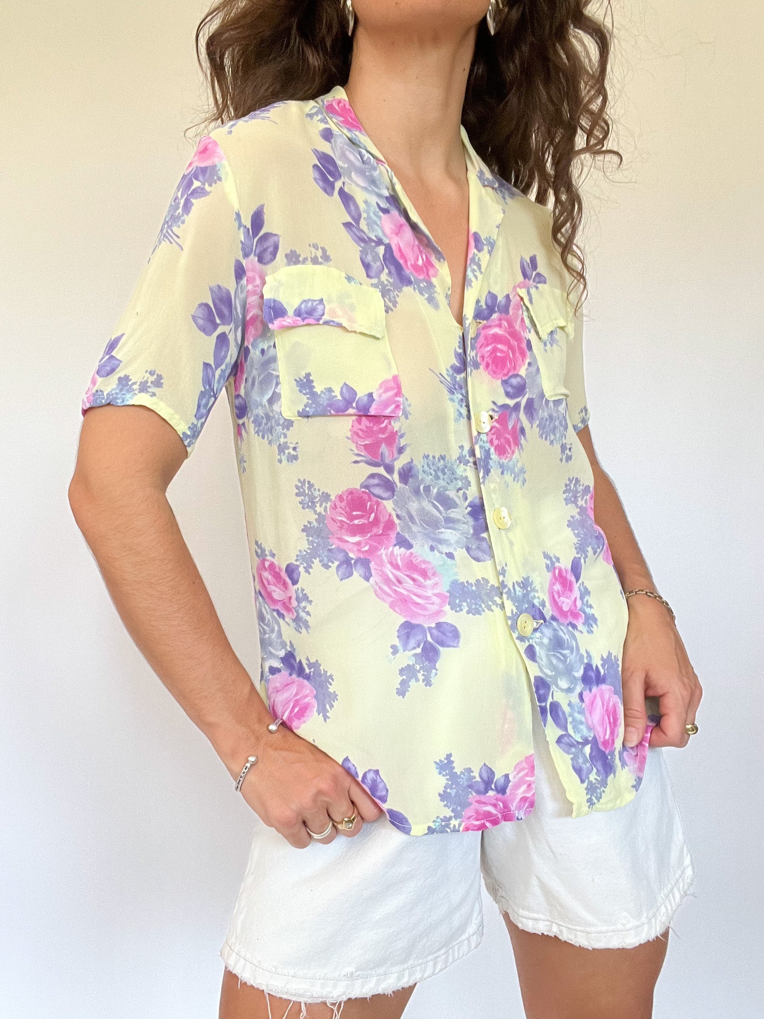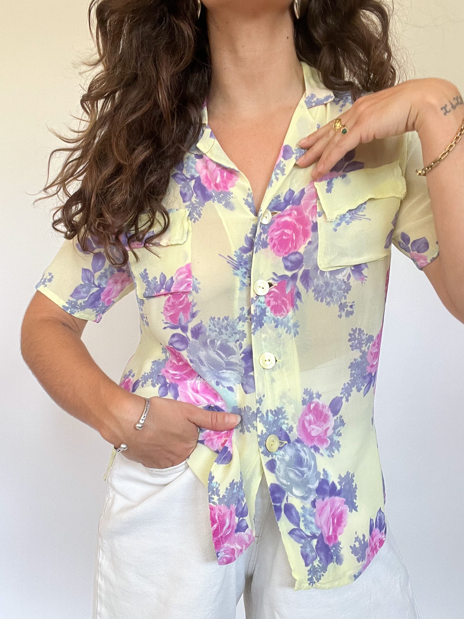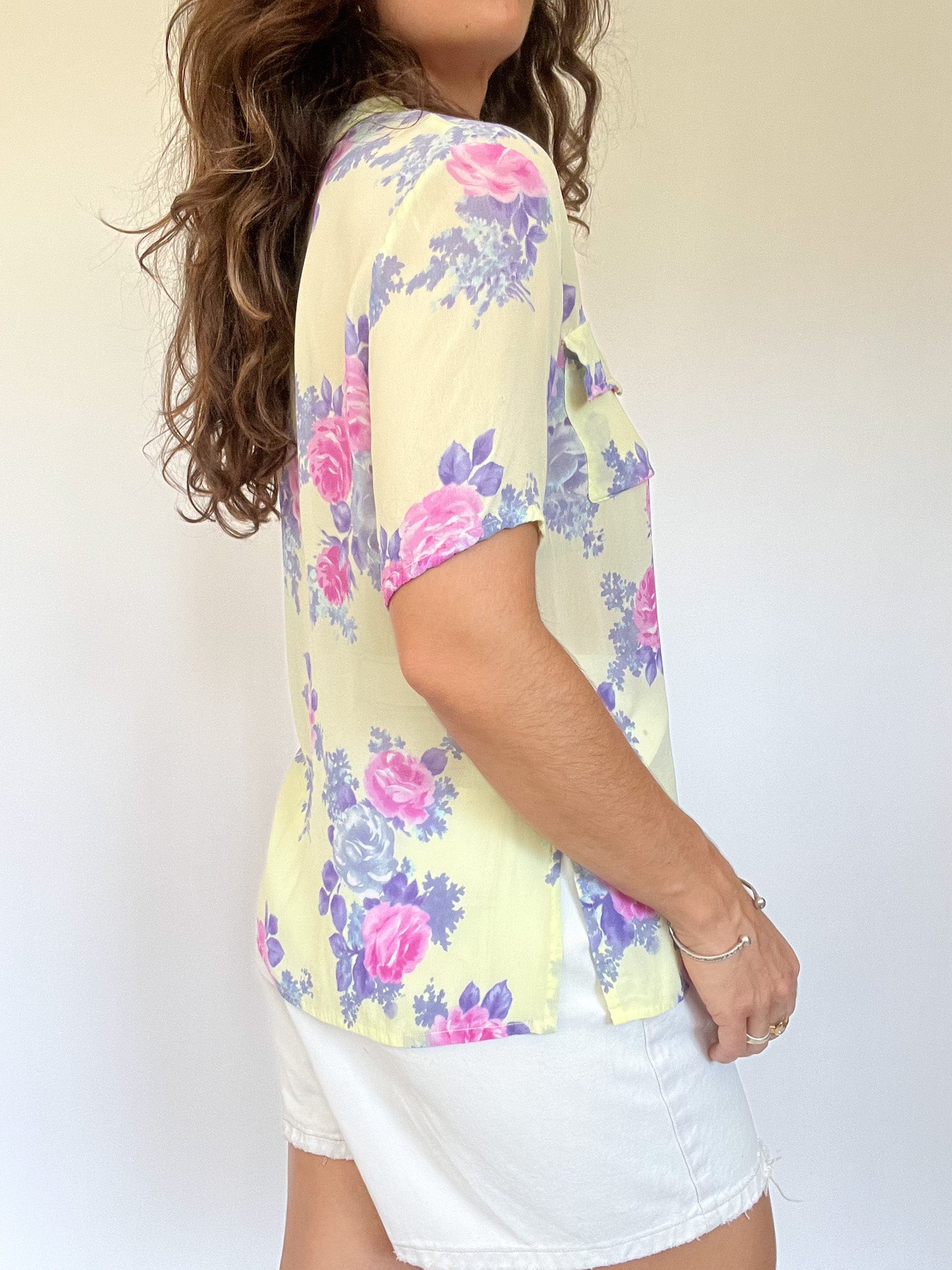Vintage 90’s Yellow Floral Button-Up Shirt