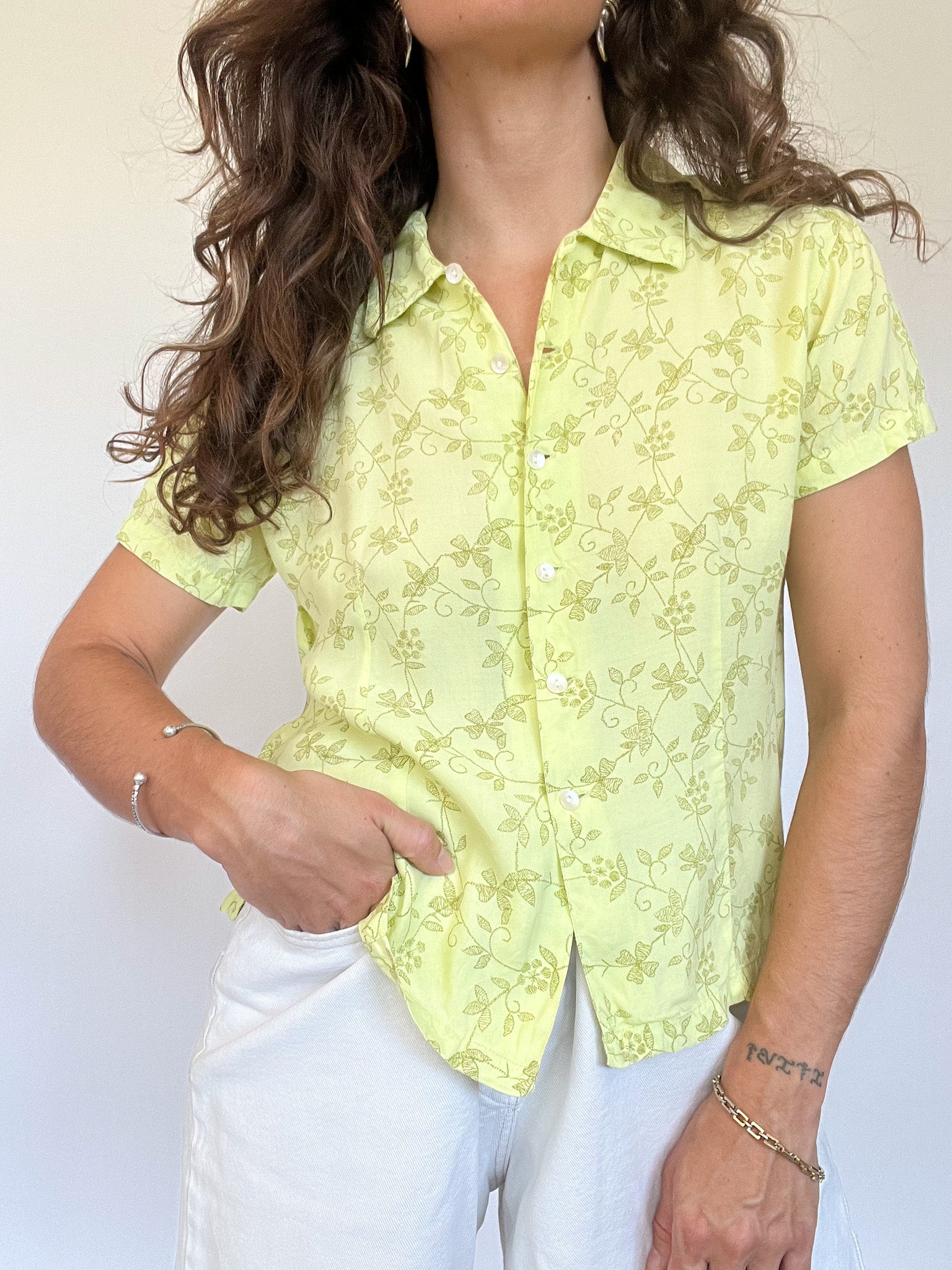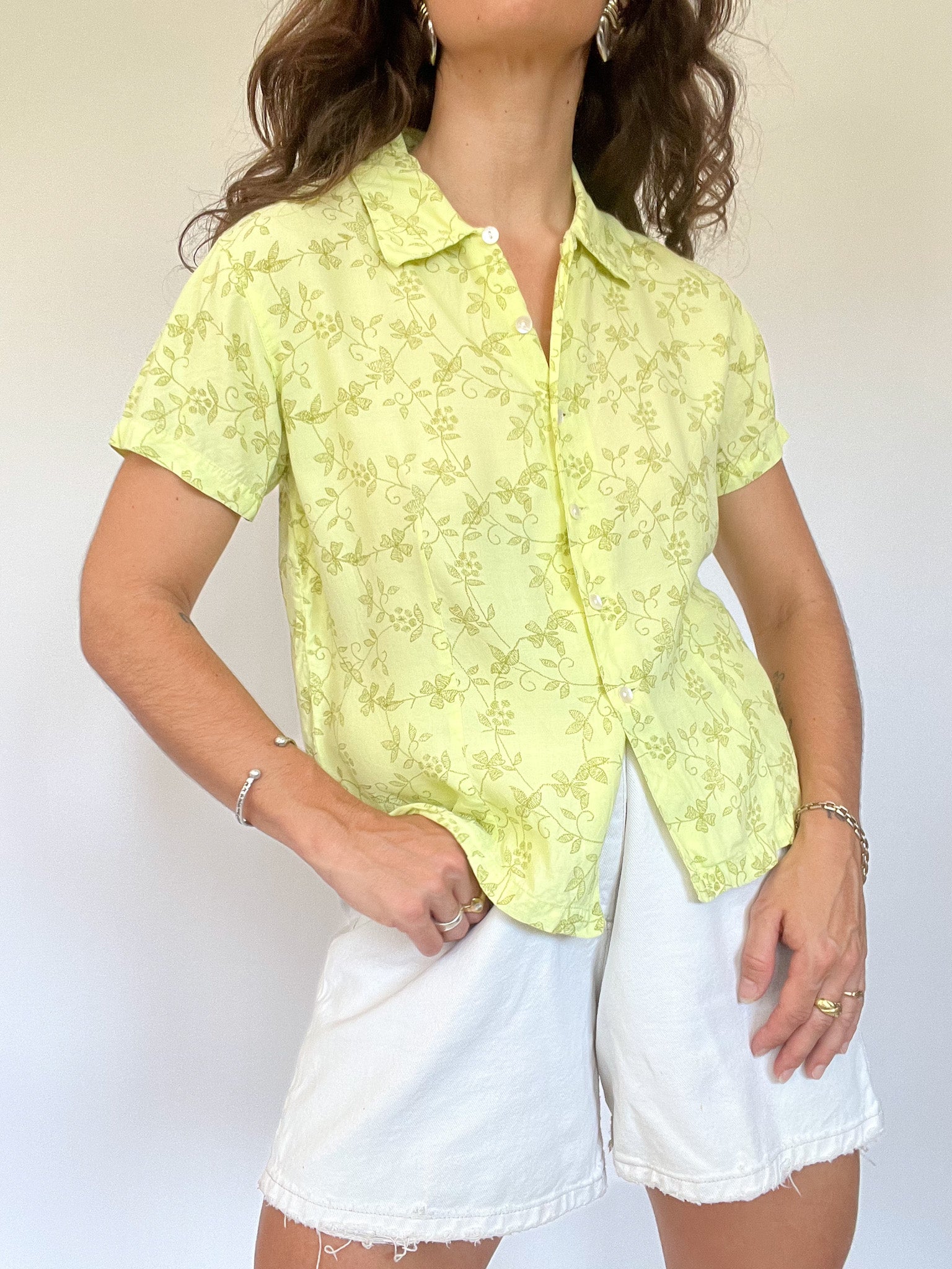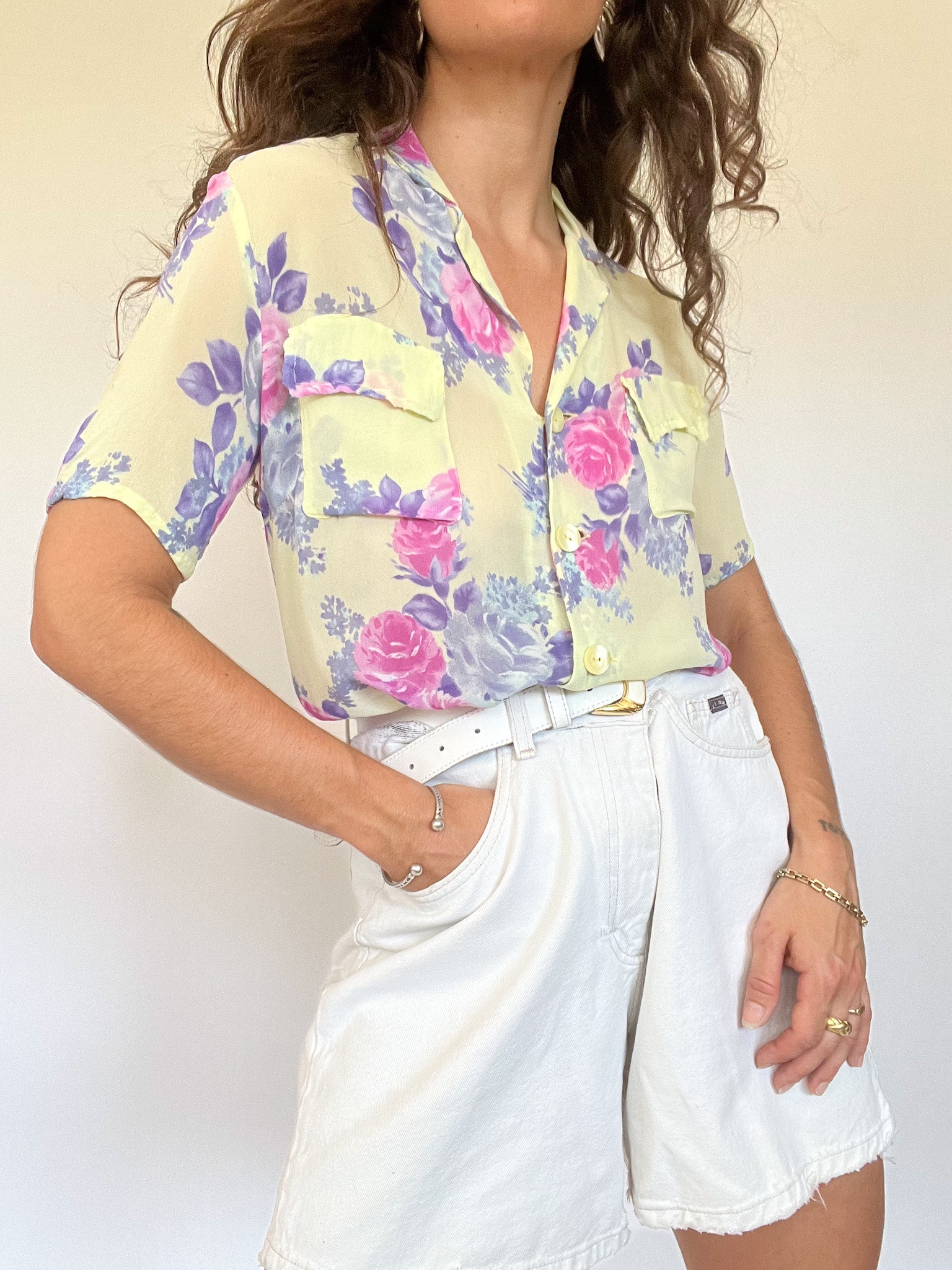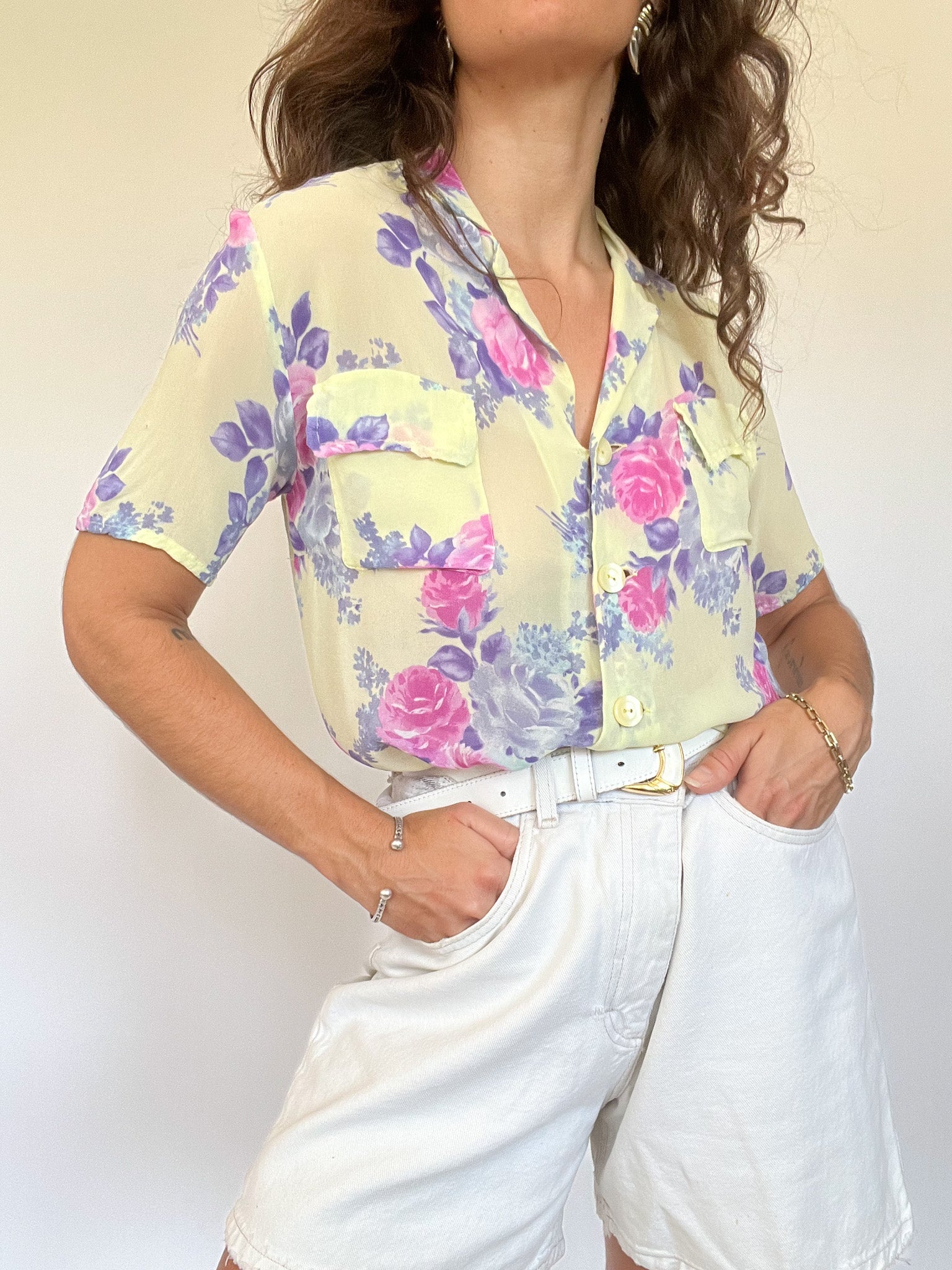 Vintage 90’s Yellow Floral Button-Up Shirt