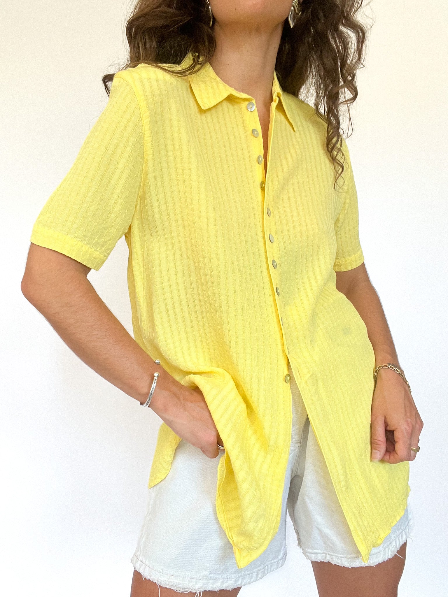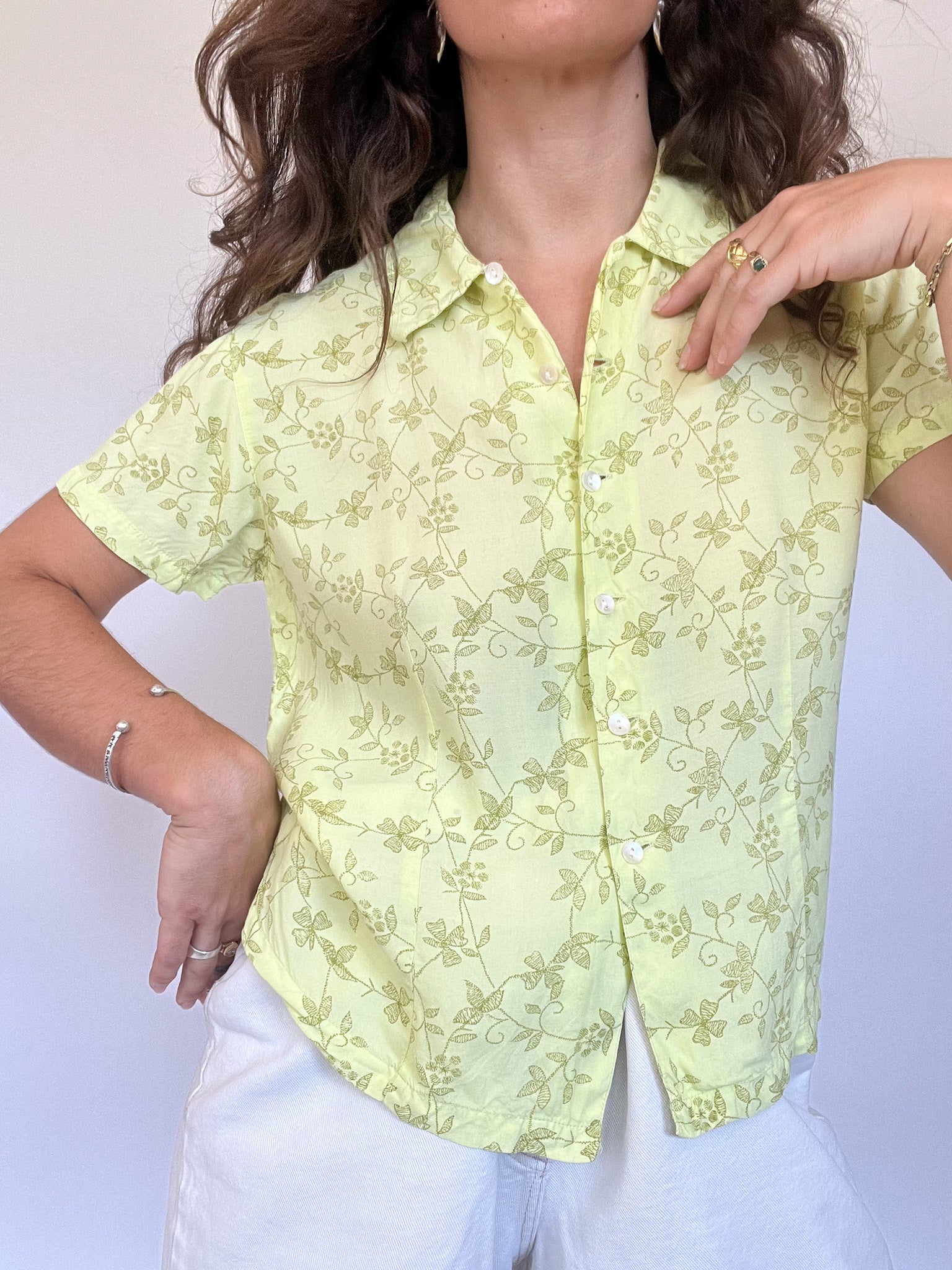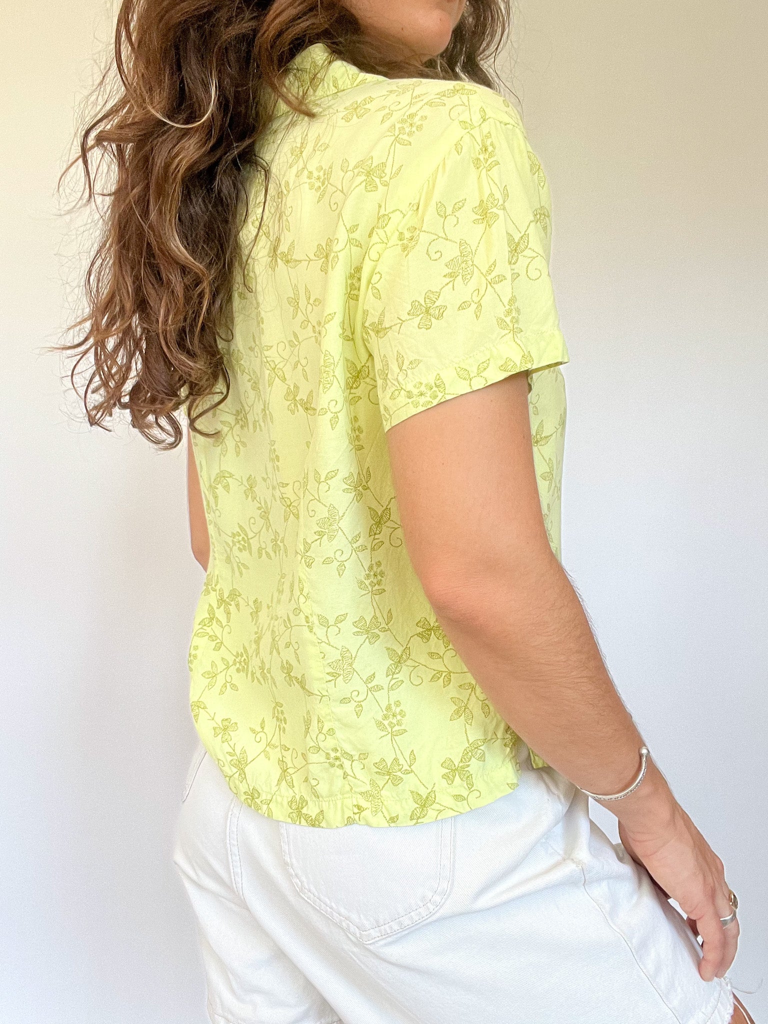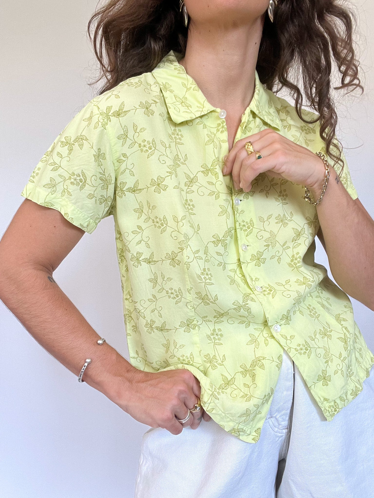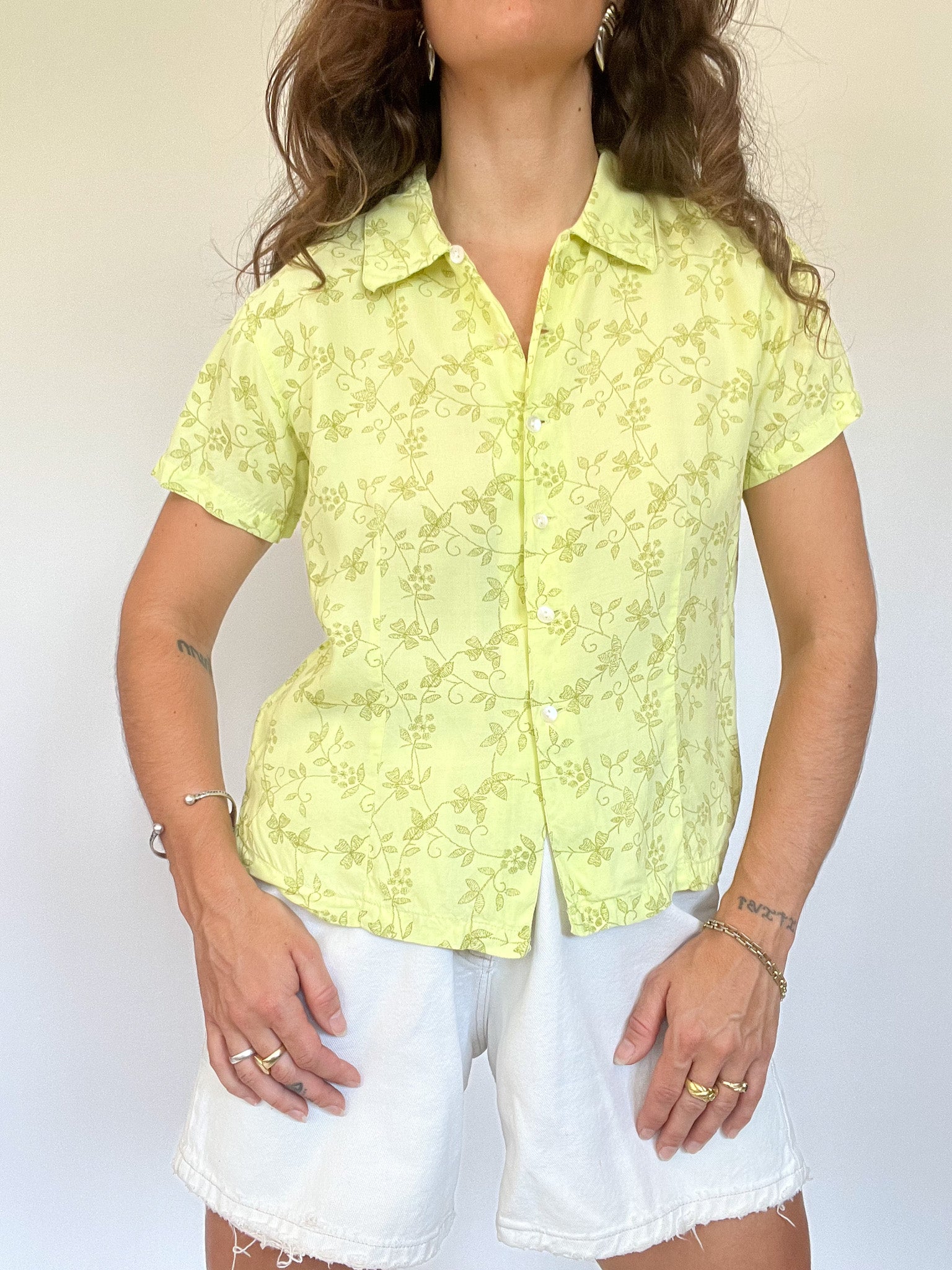 Vintage 90’s Yellow Floral Button-Up Shirt