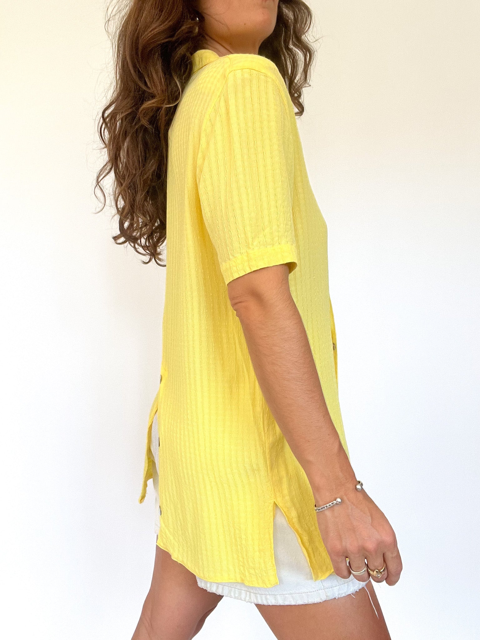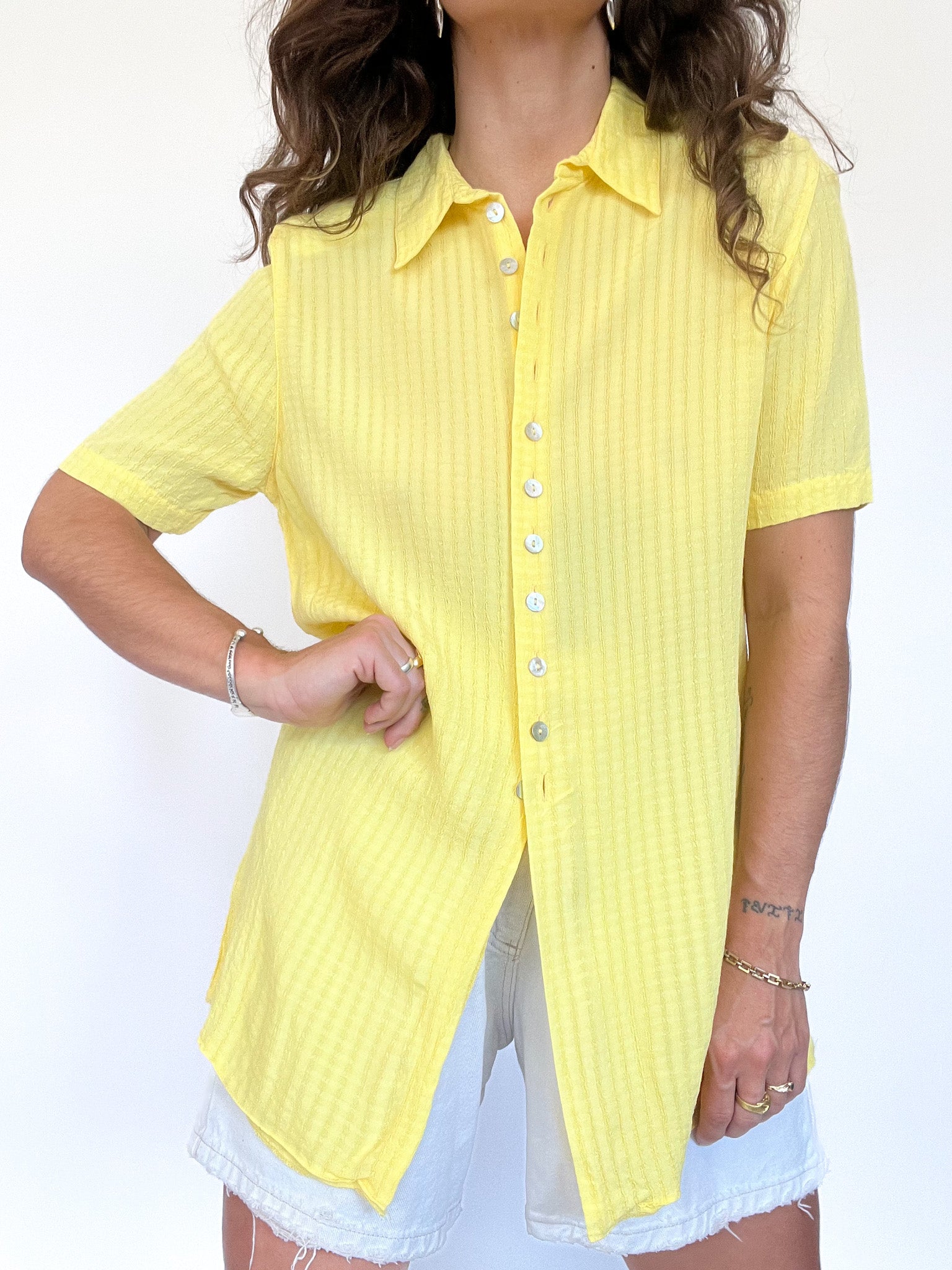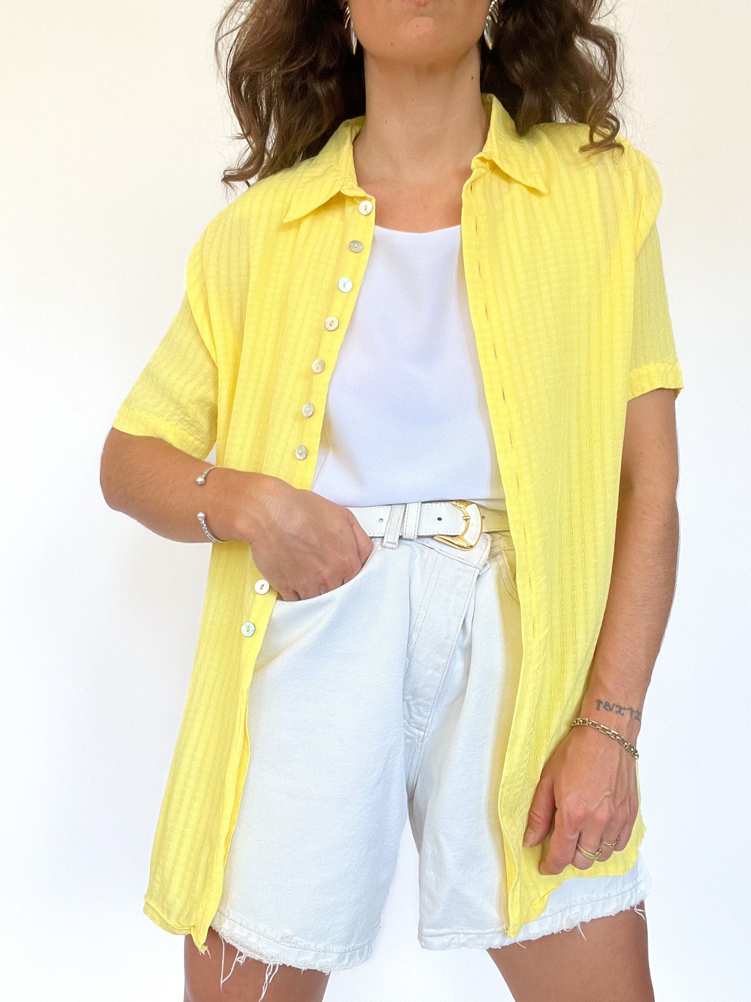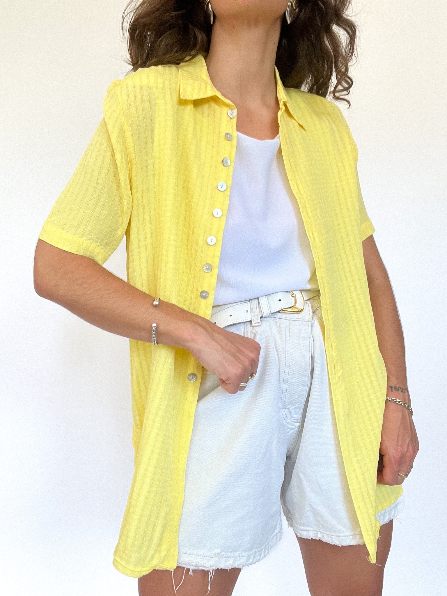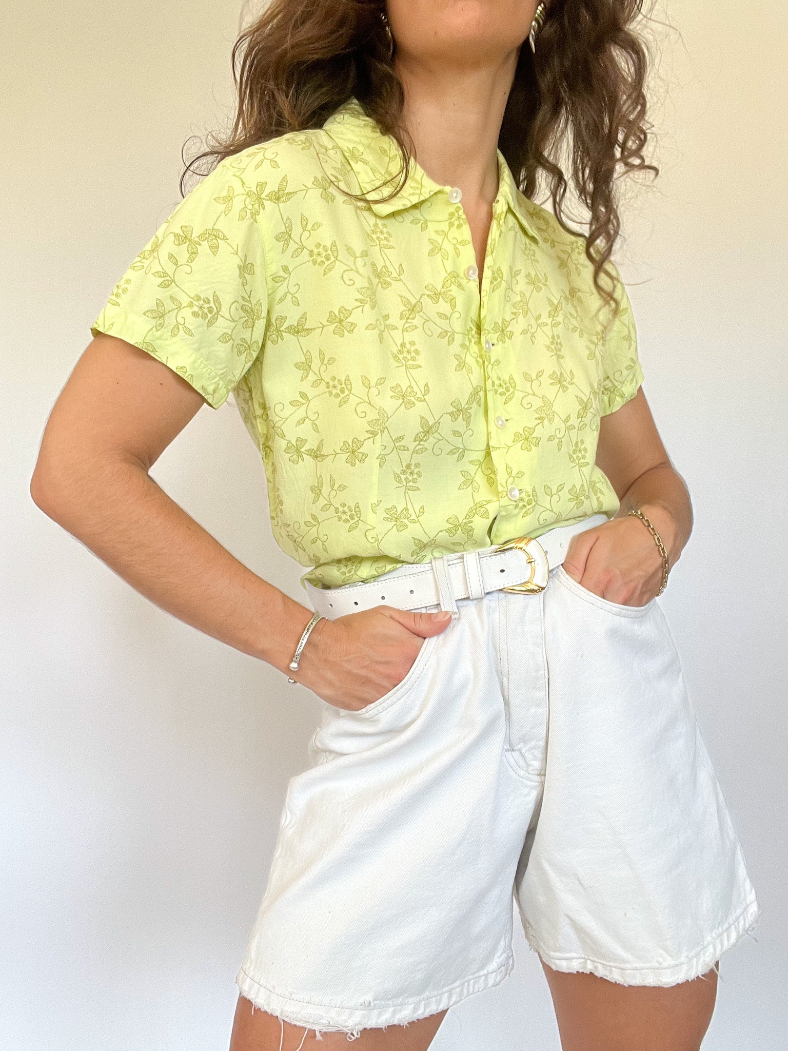 Vintage 90’s Yellow Floral Button-Up Shirt