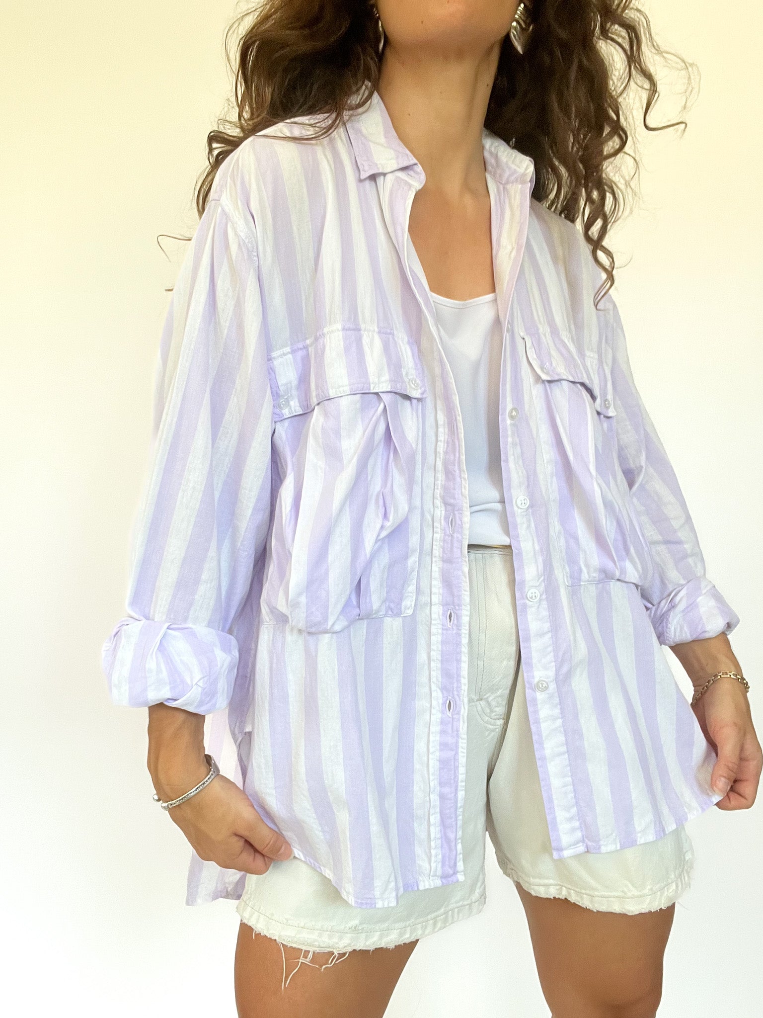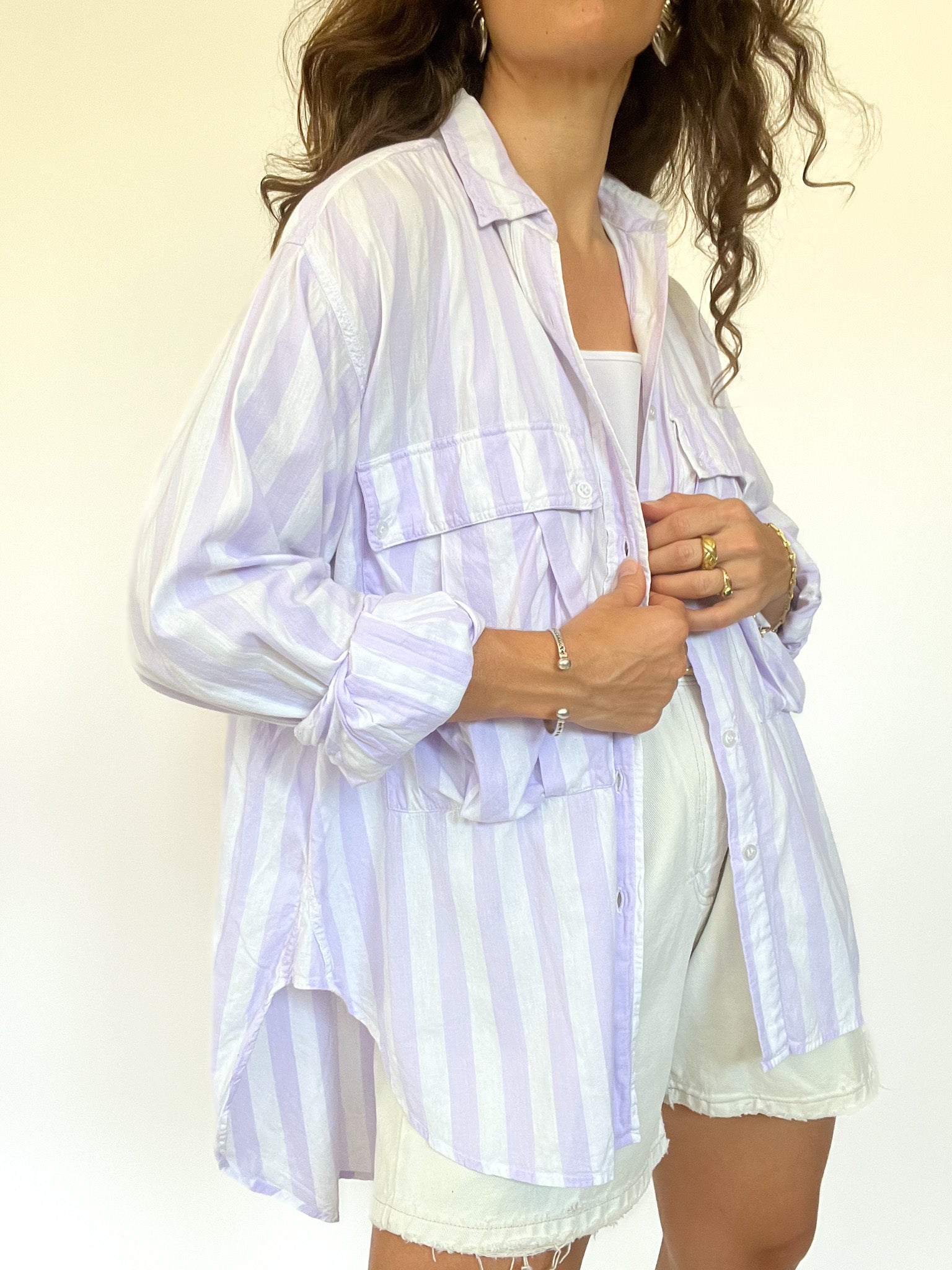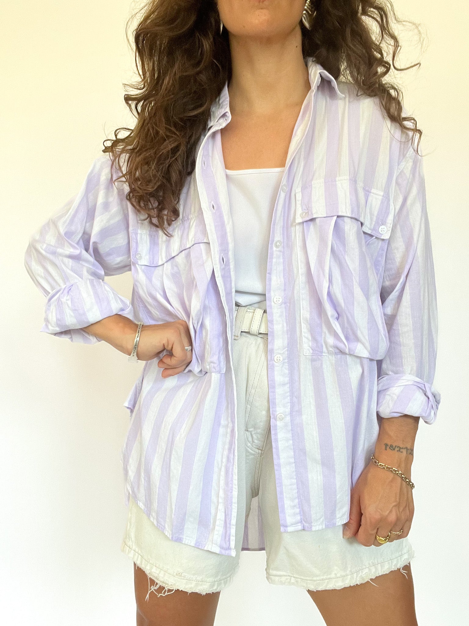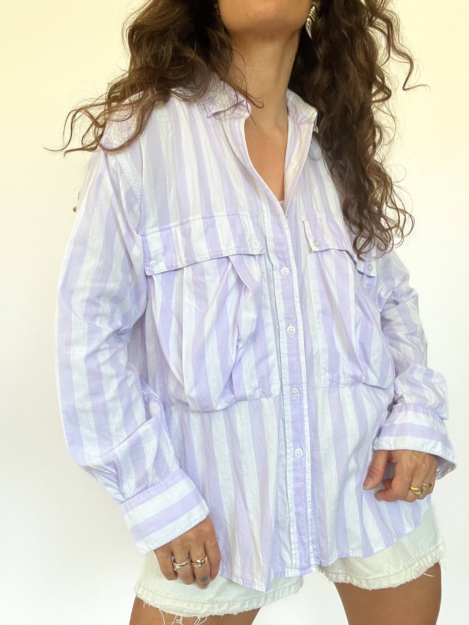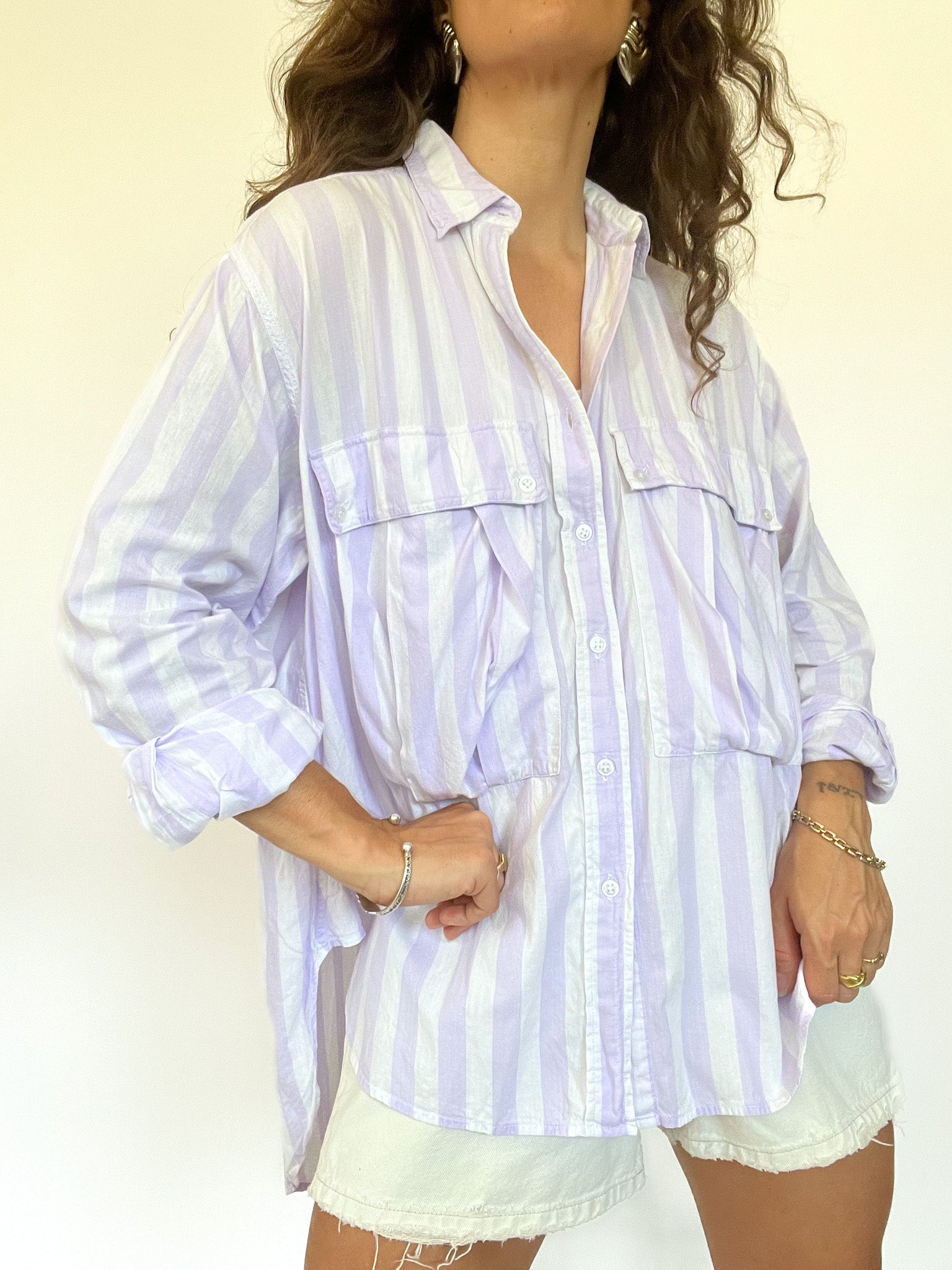 Vintage 90’s Lilac & White Striped Oversized Shirt