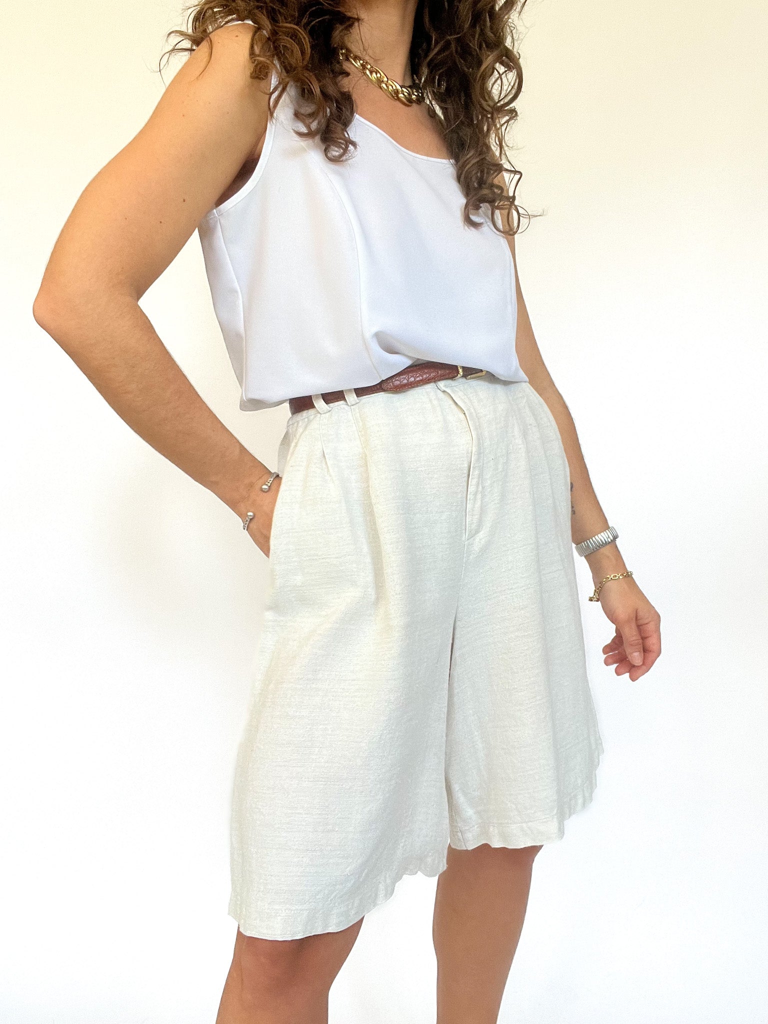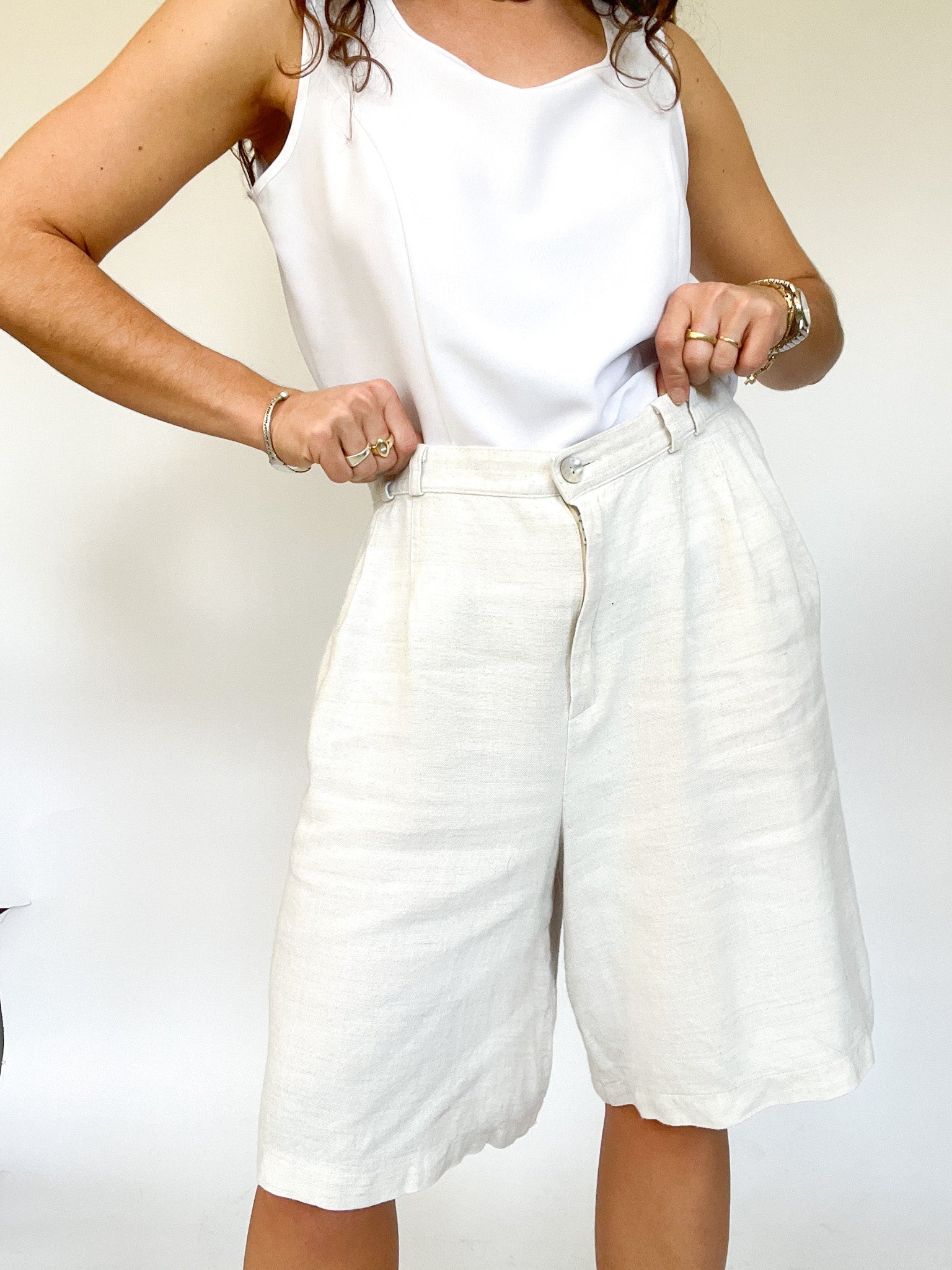 Vintage 90’s Cream Linen & Viscose Bermuda Shorts