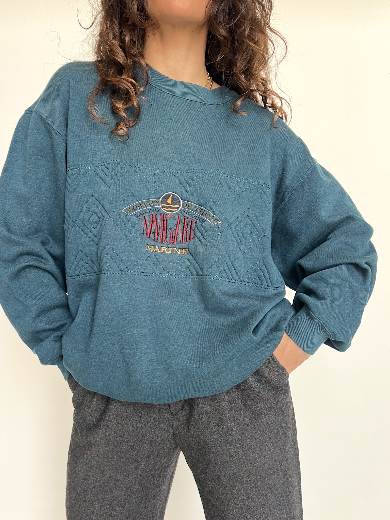 Vintage 90’s Blue Embroidered Cotton Sweat
