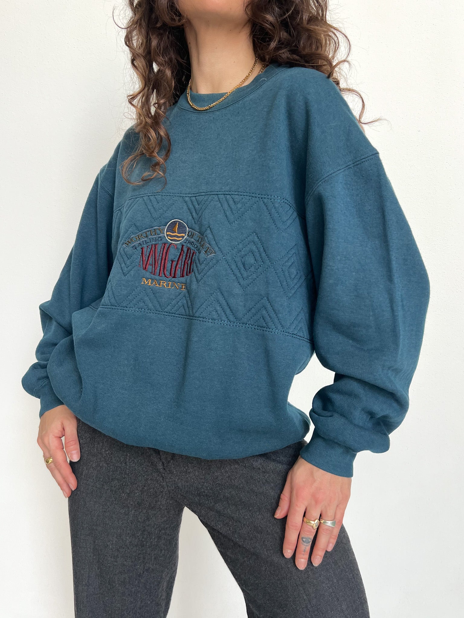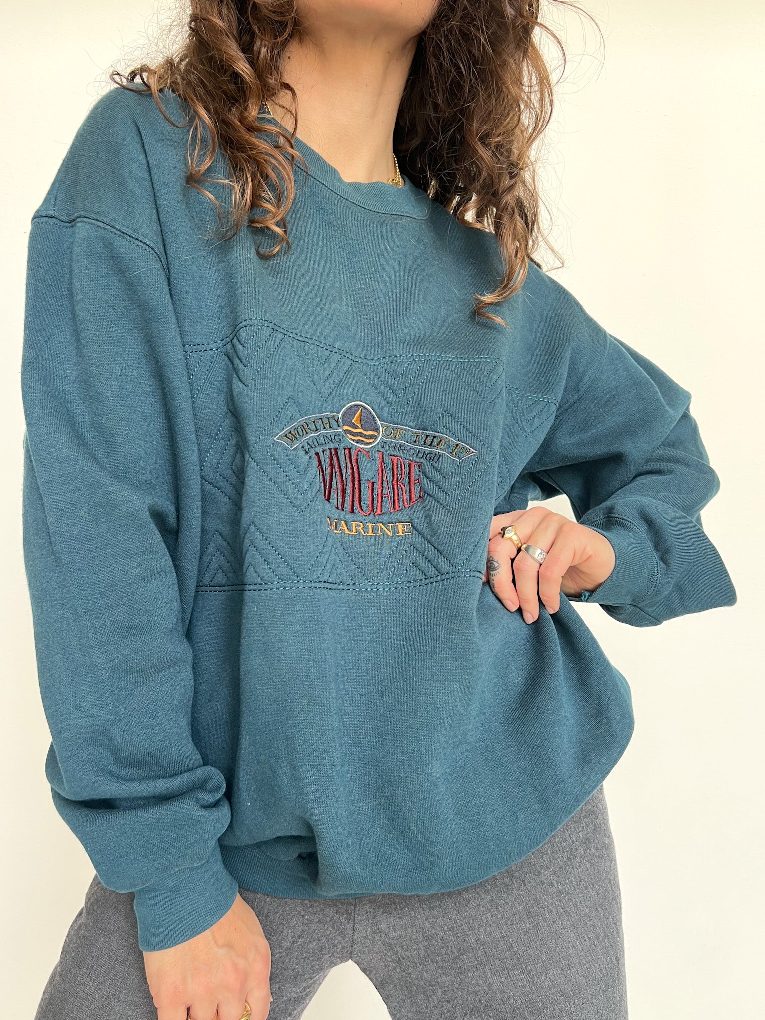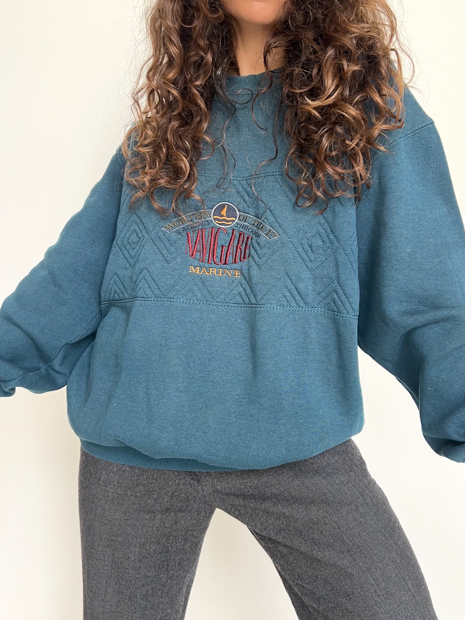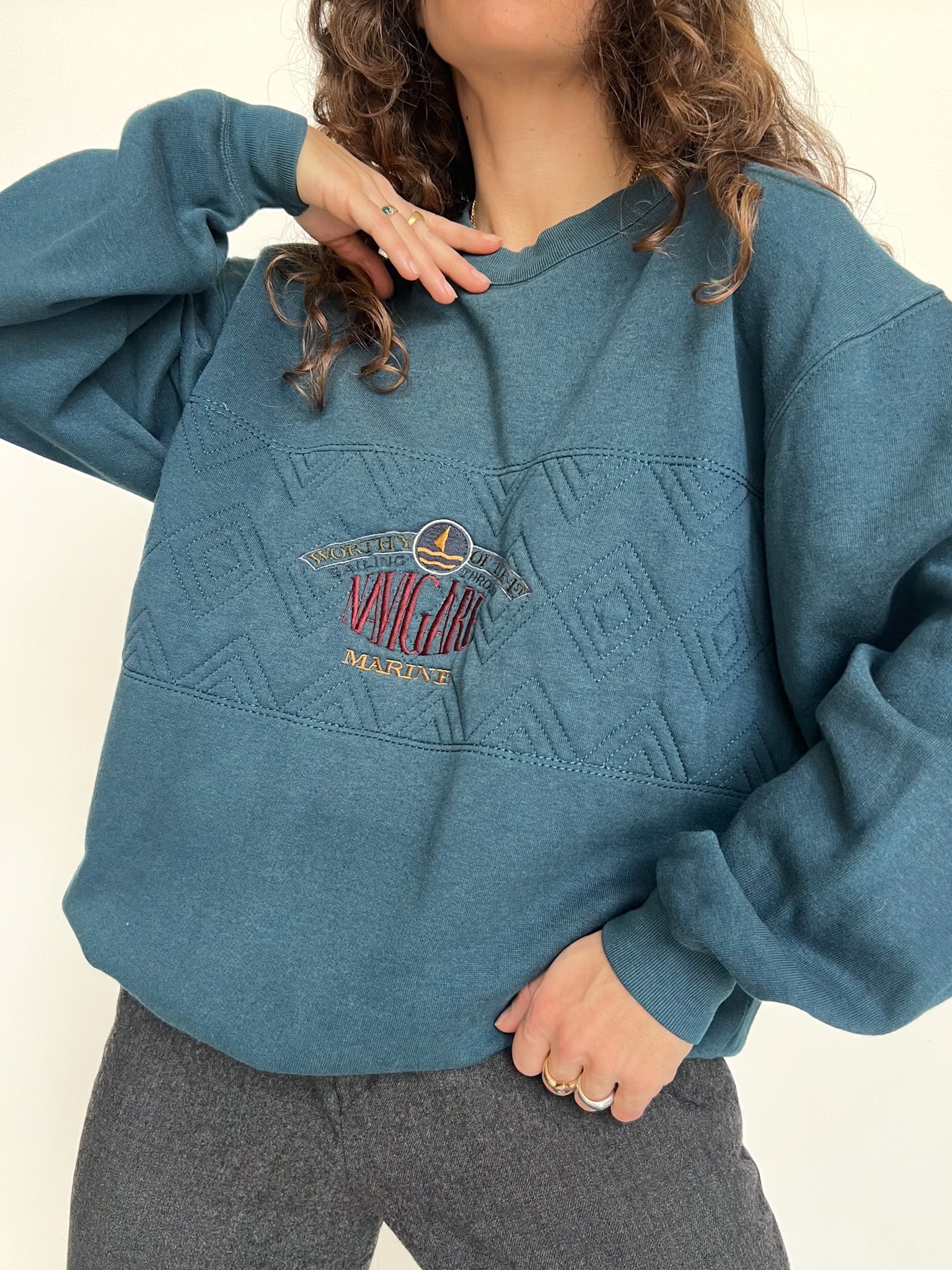 Vintage 90’s Teal & Grey Embroidered Half-Zip Sweatshirt
