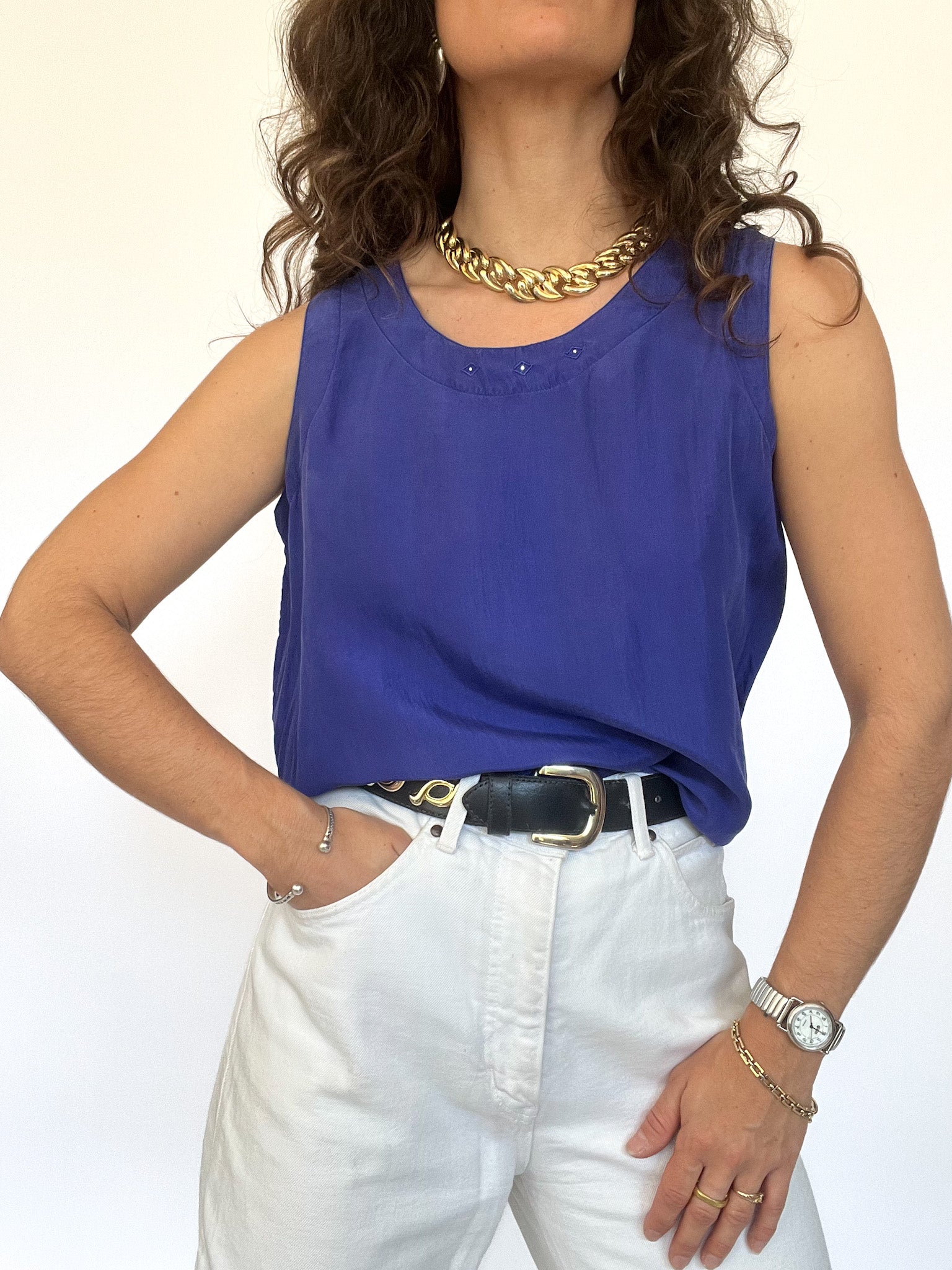 Vintage 90’s Cobalt Silk Sleeveless Top