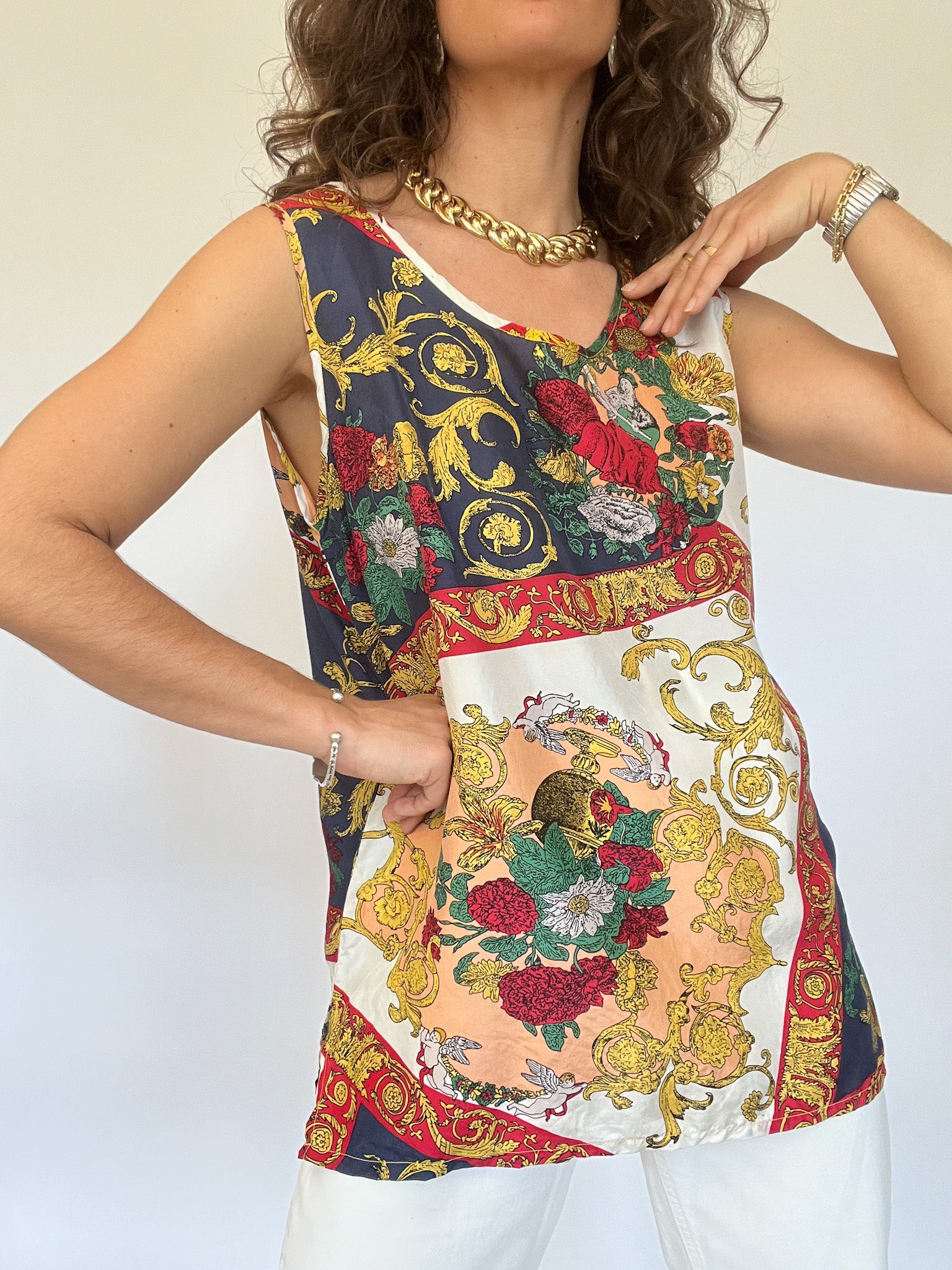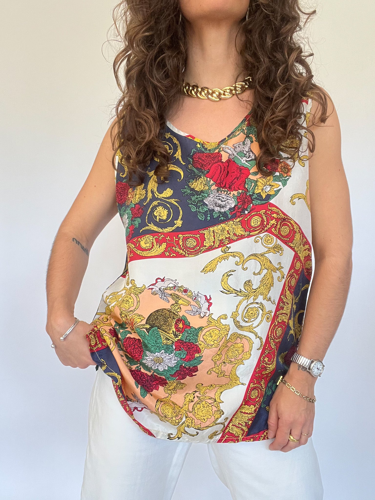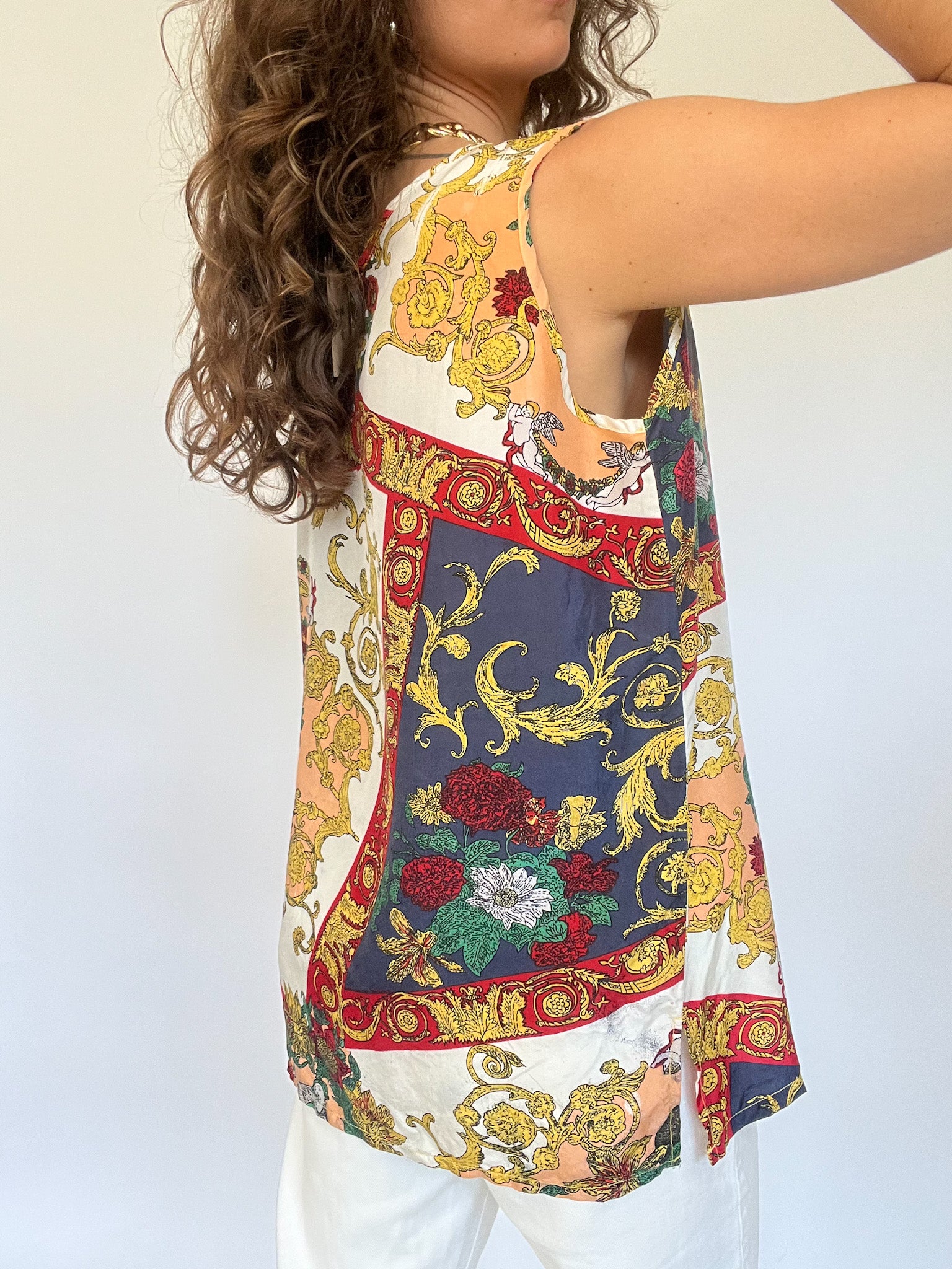 Vintage 90’s Colorful Baroque Silk Tank Top