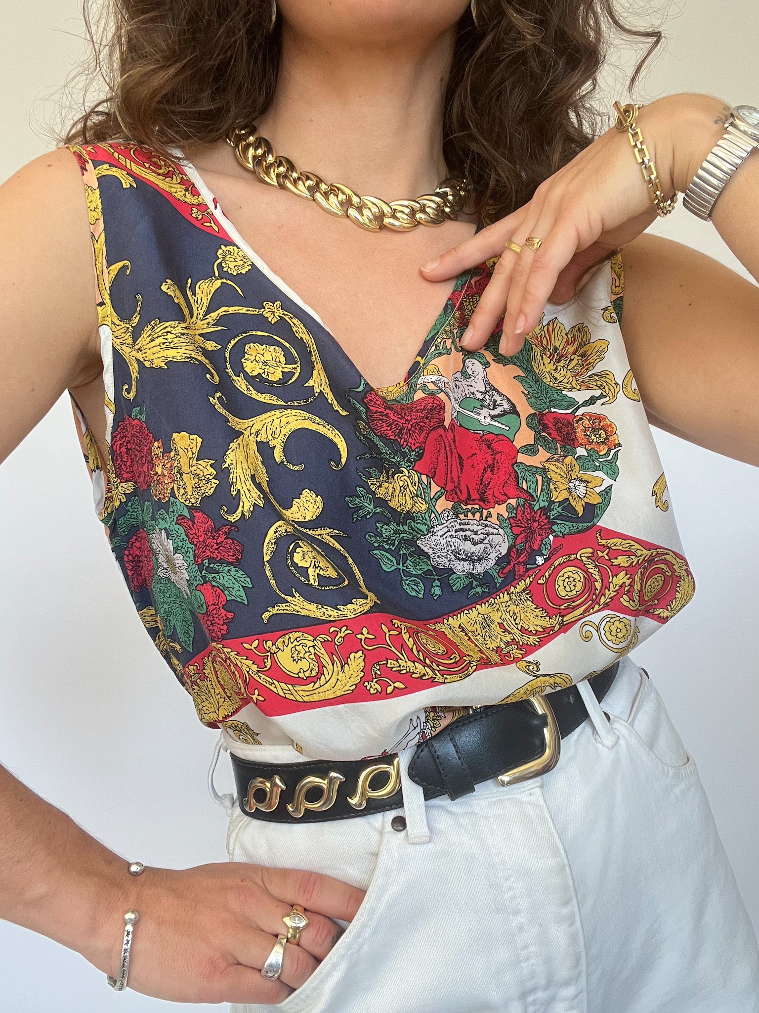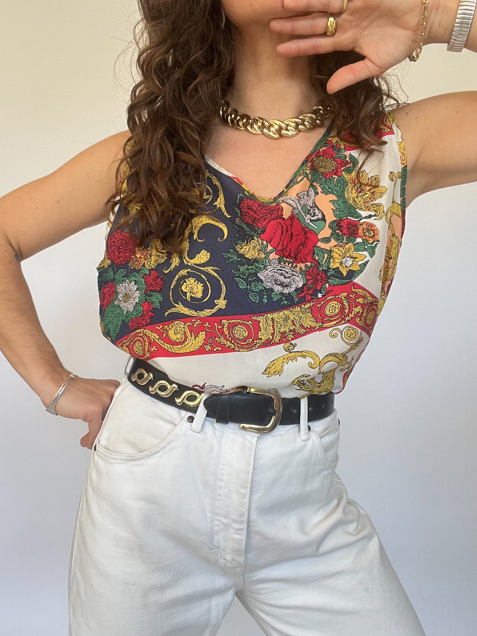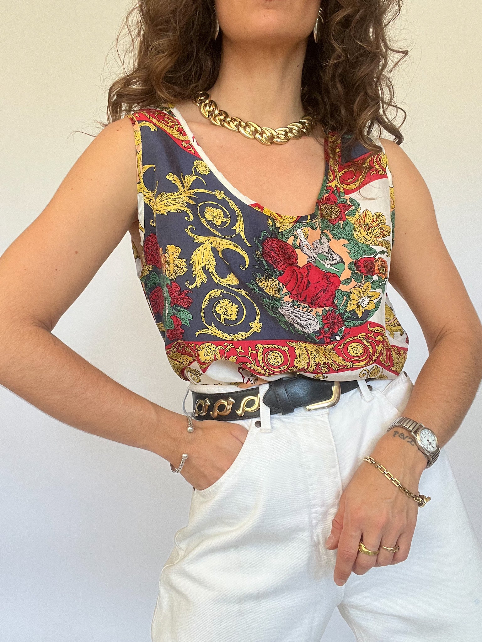 Vintage 90’s Colorful Baroque Silk Tank Top