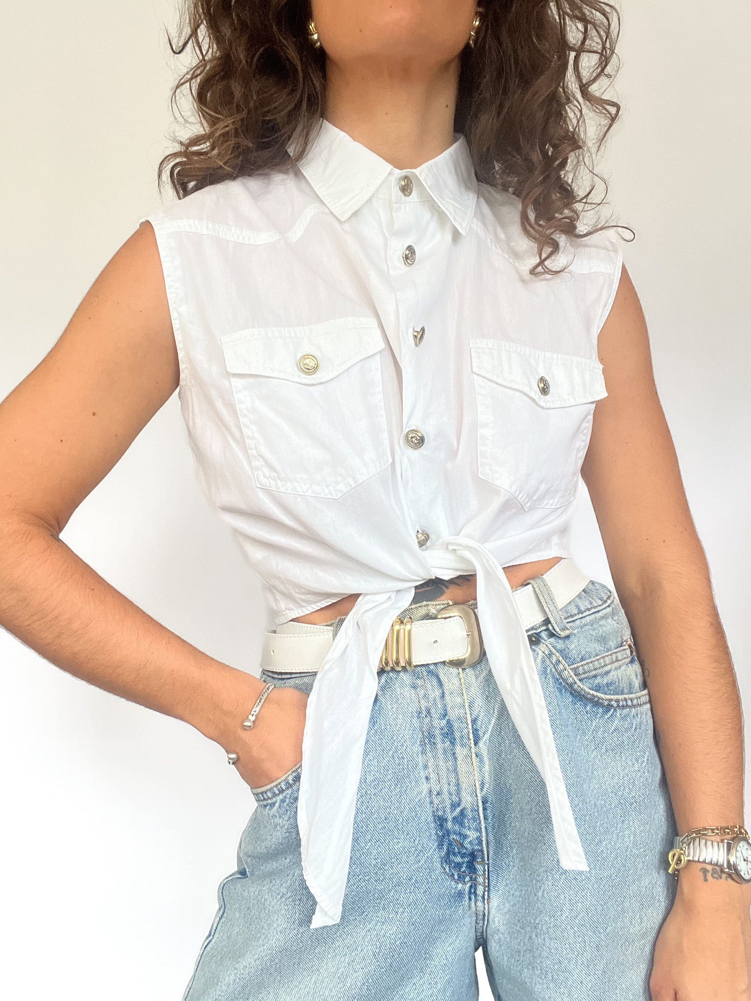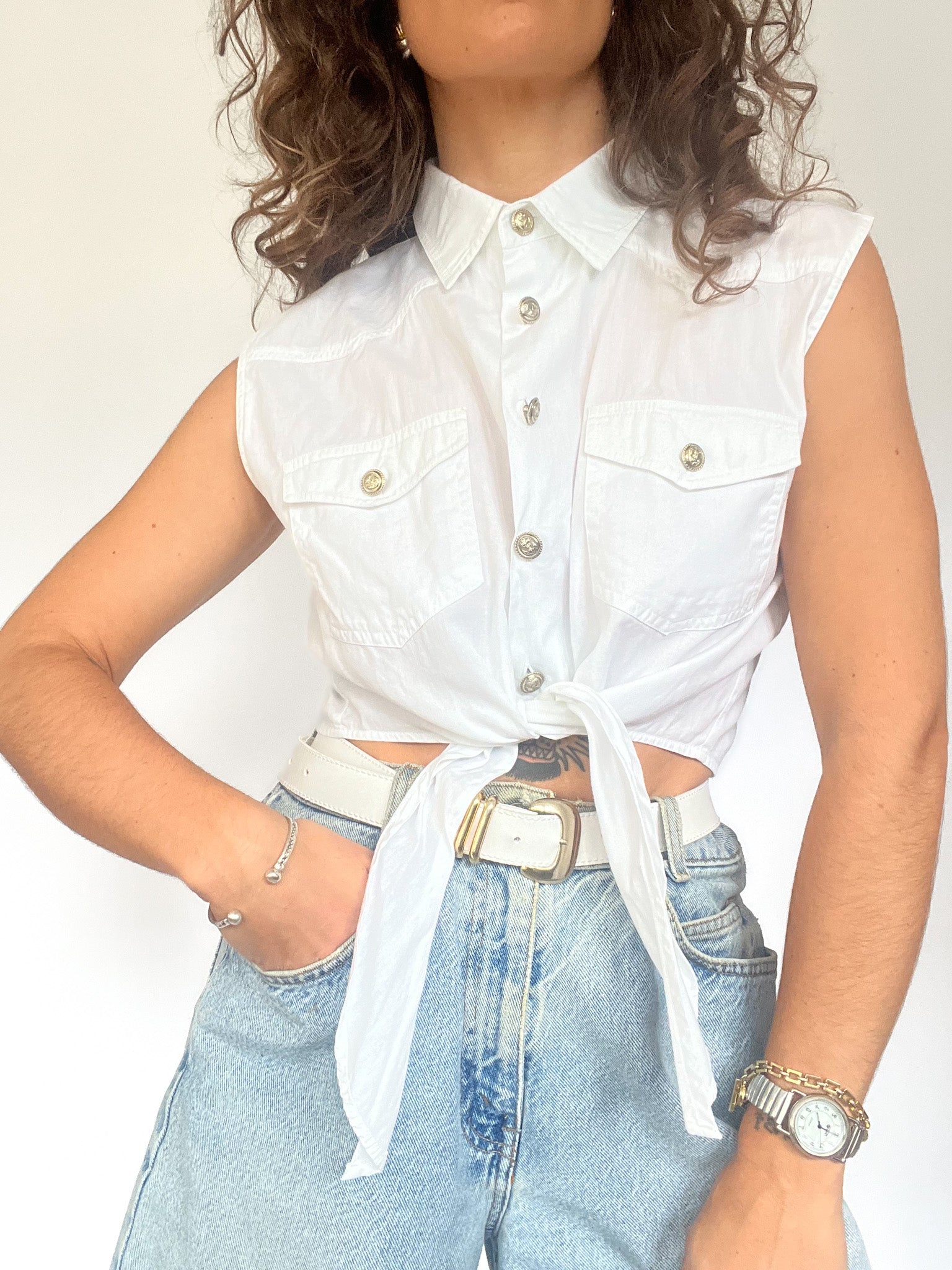 Vintage 90’s White Cotton Tie Shirt