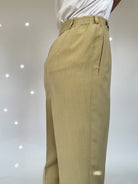 A timeless wardrobe essential, these vintage trousers in a warm beige hue embody effortless sophistication. Their structured yet fluid silhouette elongates the legs, while the tailored pleats add a refined touch. Whether styled with a crisp white shirt for a sharp look or paired with a chunky knit for a relaxed vibe, these trousers transition seamlessly from day to night.