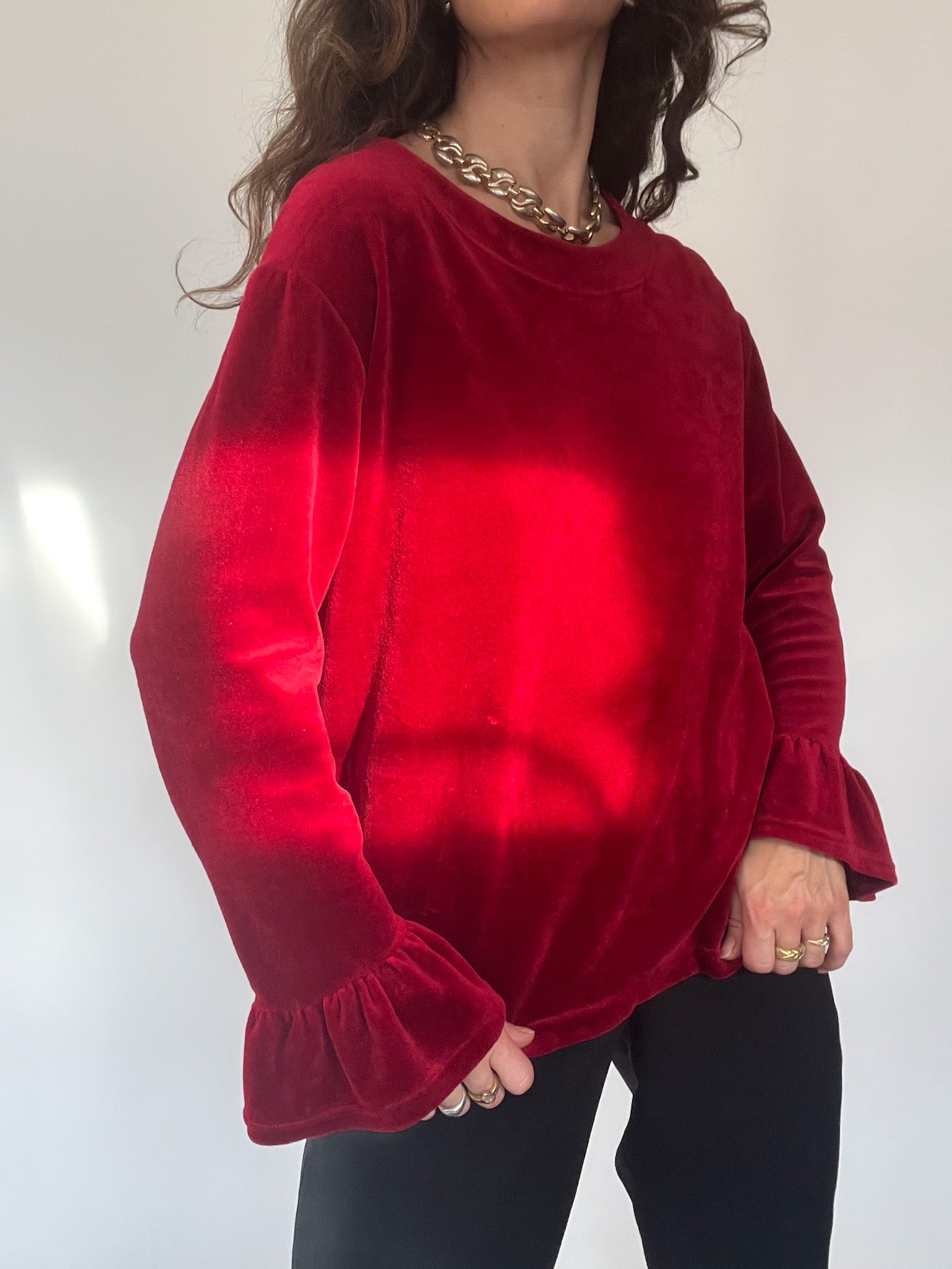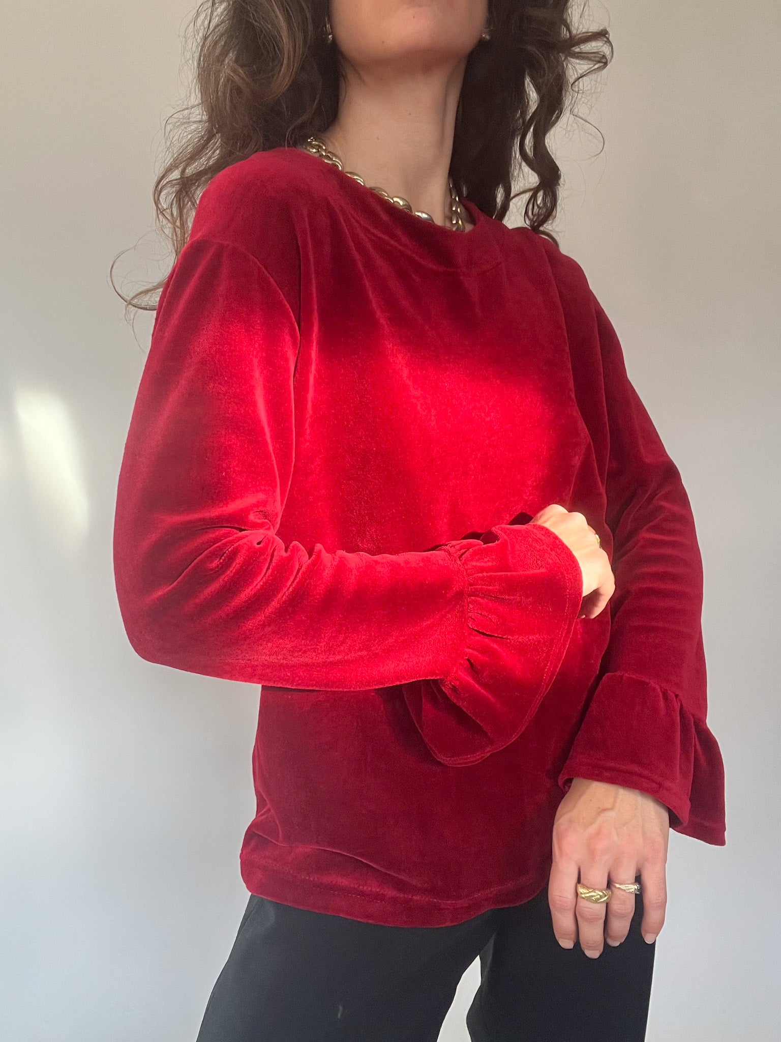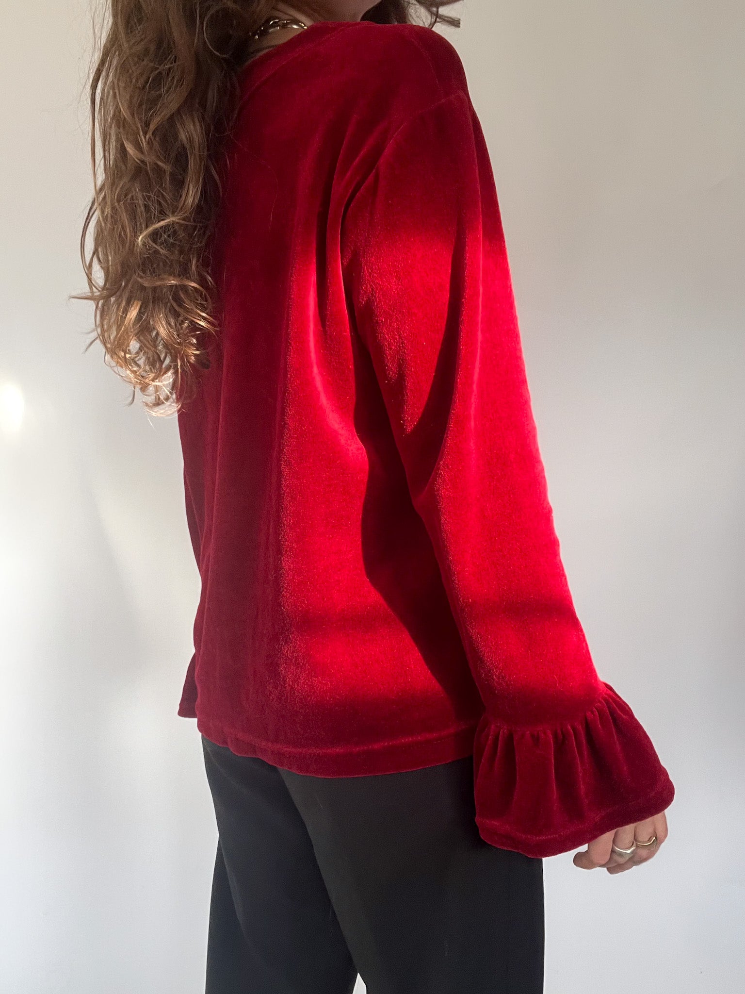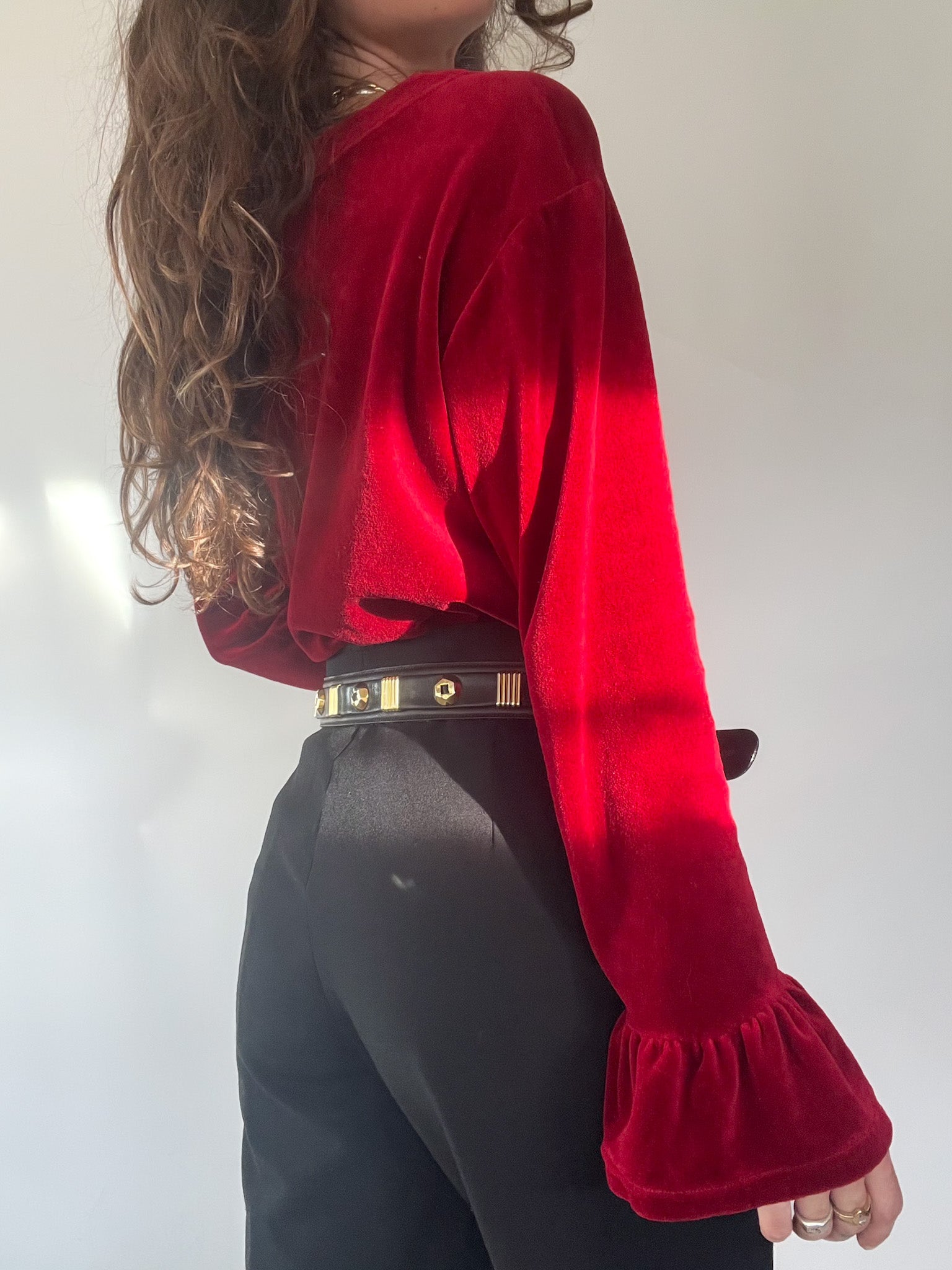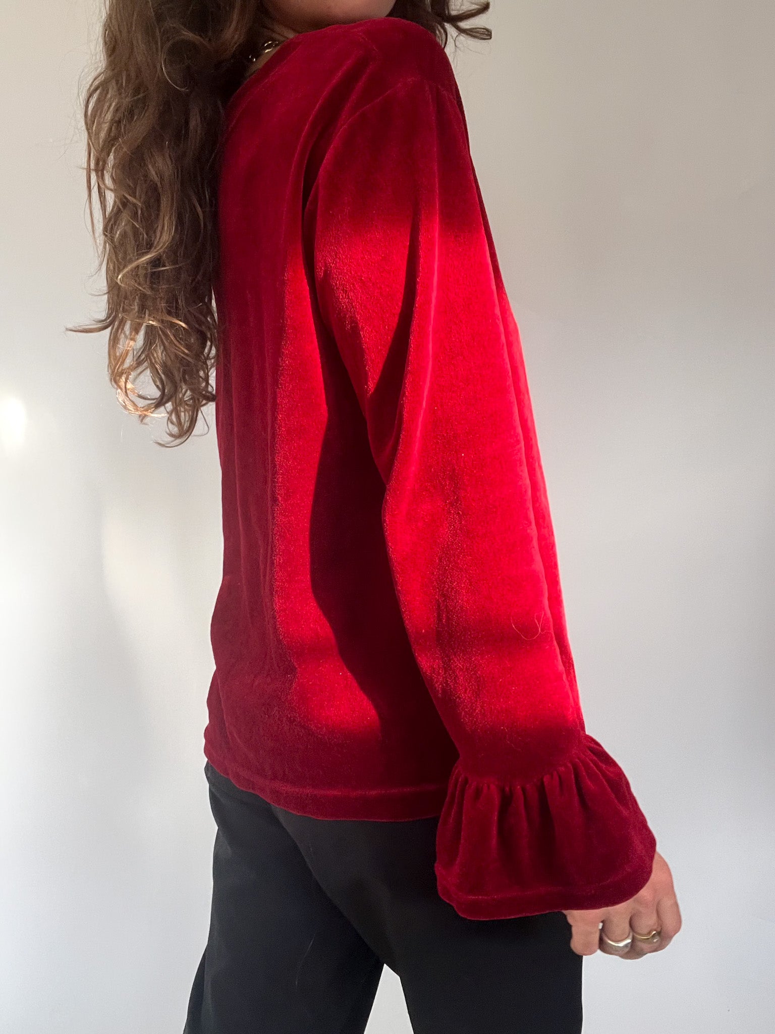 Vintage 90’s Crimson Velvet Flounce Sleeve Blouse