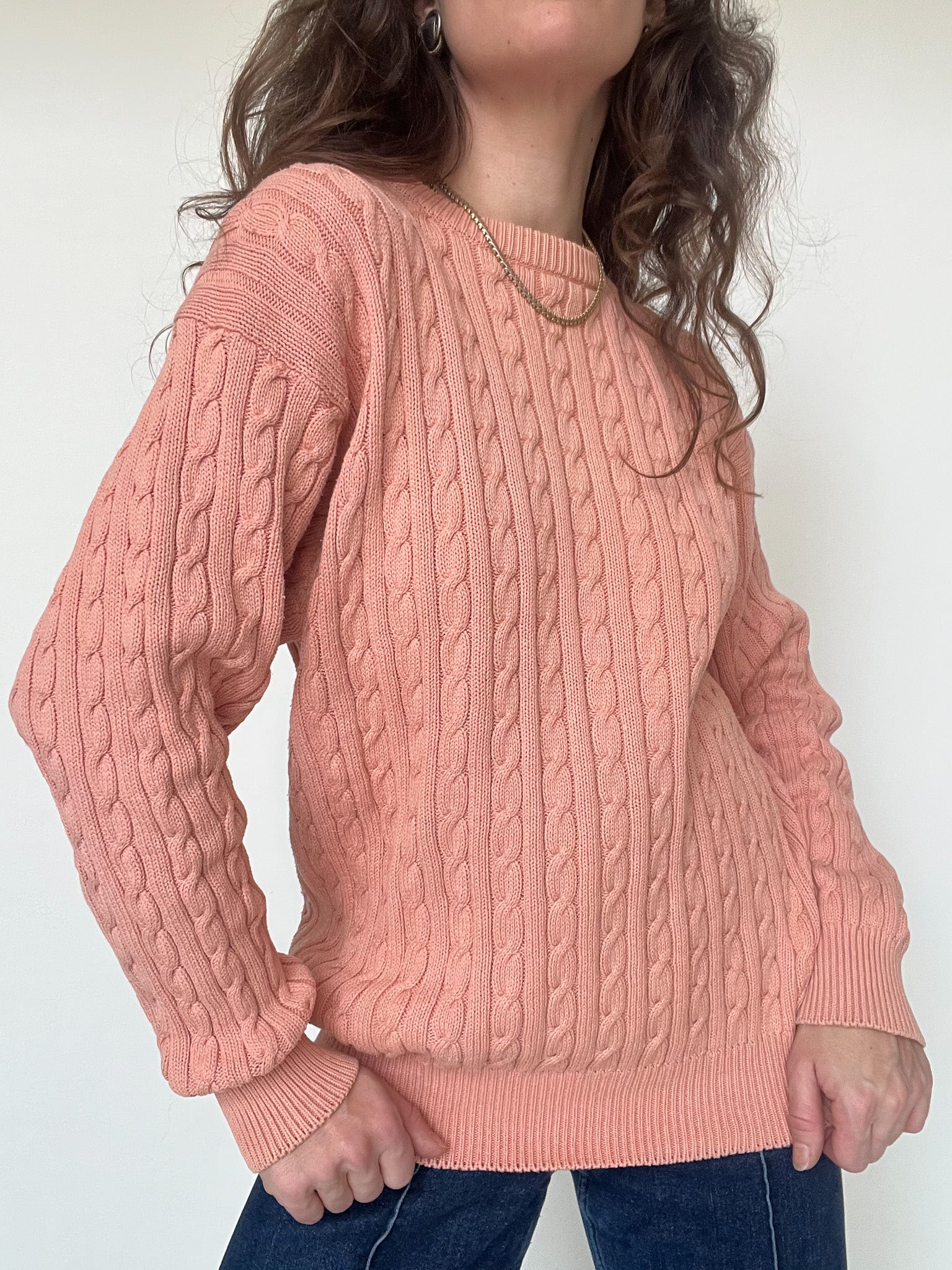 Vintage 90’s Pink Cable Knit Cotton Pullover