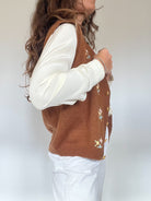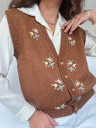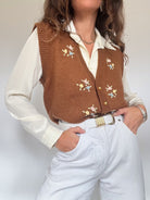 Vintage Brown Hand-Knitted Floral Embroidered Vest